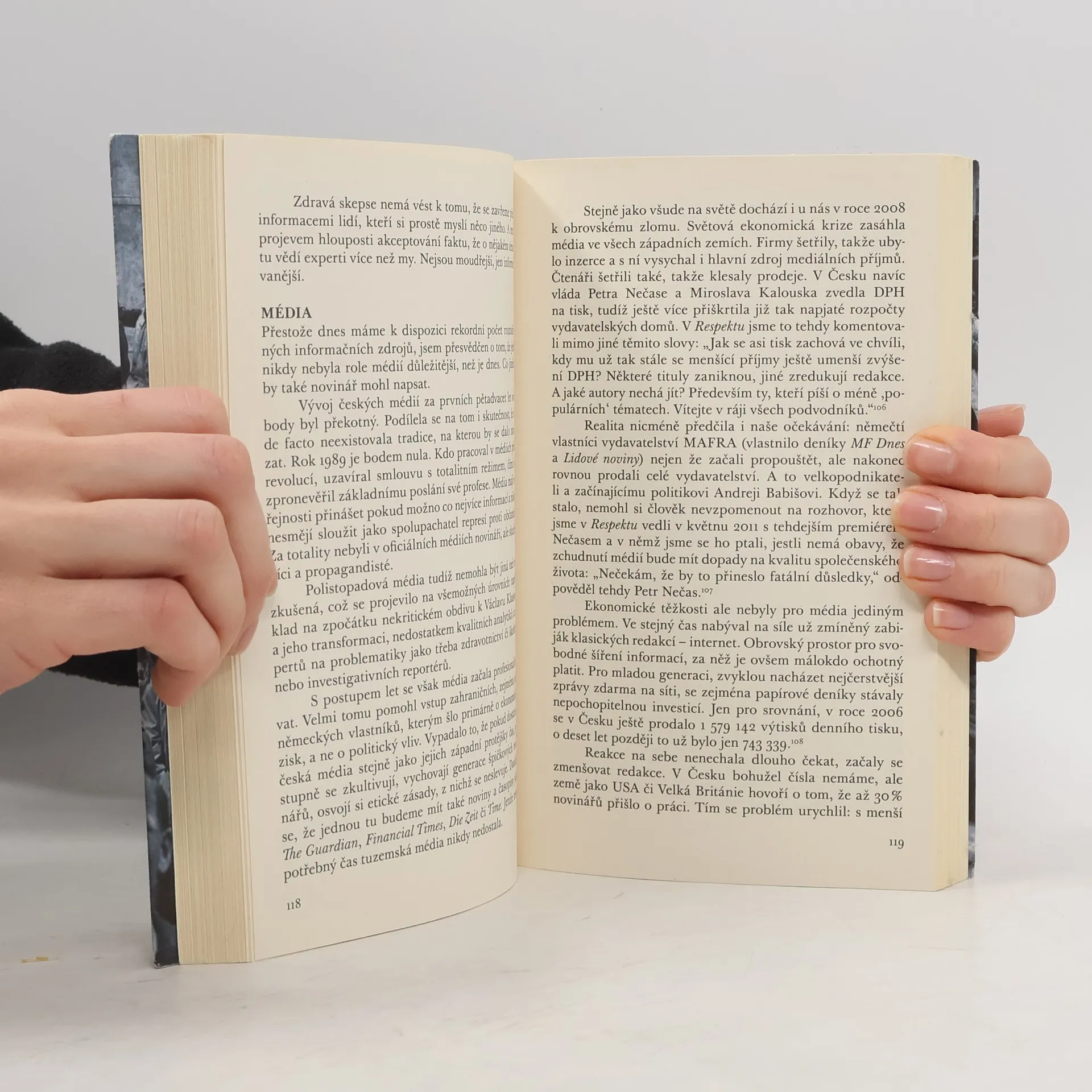Česká cesta od Masaryka k Babišovi. Žijeme v době, kdy jeden lživý příspěvek na Twitteru či Facebooku má větší dosah než systematická práce investigativních novinářů. Posilují populisté, kteří sbírají body kritikou establishmentu, i když sami mají z vlastního elitního postavení dlouhodobý prospěch. Výdobytky demokracie jako svoboda slova či nezávislost médií jsou necelých třicet let po listopadu 1989 zpochybňovány. Šéfredaktor týdeníku Respekt popisuje dobrodružnou českou cestu od vzniku republiky po současnost a zasazuje dnešní politické a společenské události do historického a evropského kontextu. Je to svým způsobem rozmluva s minulostí o naší budoucnosti, v níž myšlenkový rámec dávají autorovi úvahy K. H. Borovského, H. G. Schauera, T. G. Masaryka, Ferdinanda Peroutky, Václava Černého, Jana Patočky, Erazima Koháka či Václava Havla. S odkazem na velké kritické duchy demokratické tradice Tabery jasně ukazuje, že rizikům přítomnosti se nejlépe čelí nikoliv panikou, ale chladnou hlavou a rozhodností.