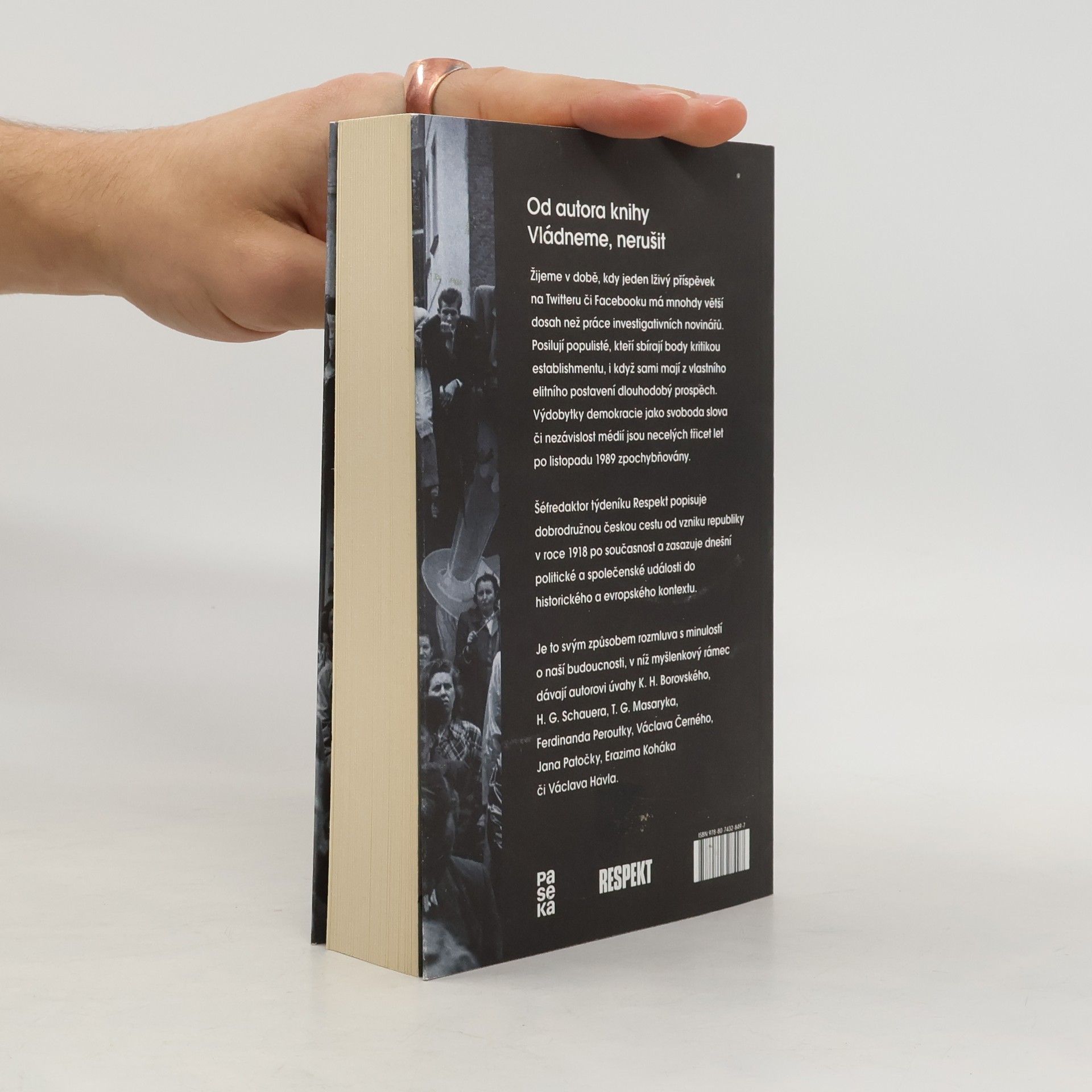 Česká cesta od Masaryka k Babišovi. Žijeme v době, kdy jeden lživý příspěvek na Twitteru či Facebooku má větší dosah než systematická práce investigativních novinářů. Posilují populisté, kteří sbírají body kritikou establishmentu, i když sami mají z vlastního elitního postavení dlouhodobý prospěch. Výdobytky demokracie jako svoboda slova či nezávislost médií jsou necelých třicet let po listopadu 1989 zpochybňovány. Šéfredaktor týdeníku Respekt popisuje dobrodružnou českou cestu od vzniku republiky po současnost a zasazuje dnešní politické a společenské události do historického a evropského kontextu. Je to svým způsobem rozmluva s minulostí o naší budoucnosti, v níž myšlenkový rámec dávají autorovi úvahy K. H. Borovského, H. G. Schauera, T. G. Masaryka, Ferdinanda Peroutky, Václava Černého, Jana Patočky, Erazima Koháka či Václava Havla. S odkazem na velké kritické duchy demokratické tradice Tabery jasně ukazuje, že rizikům přítomnosti se nejlépe čelí nikoliv panikou, ale chladnou hlavou a rozhodností.