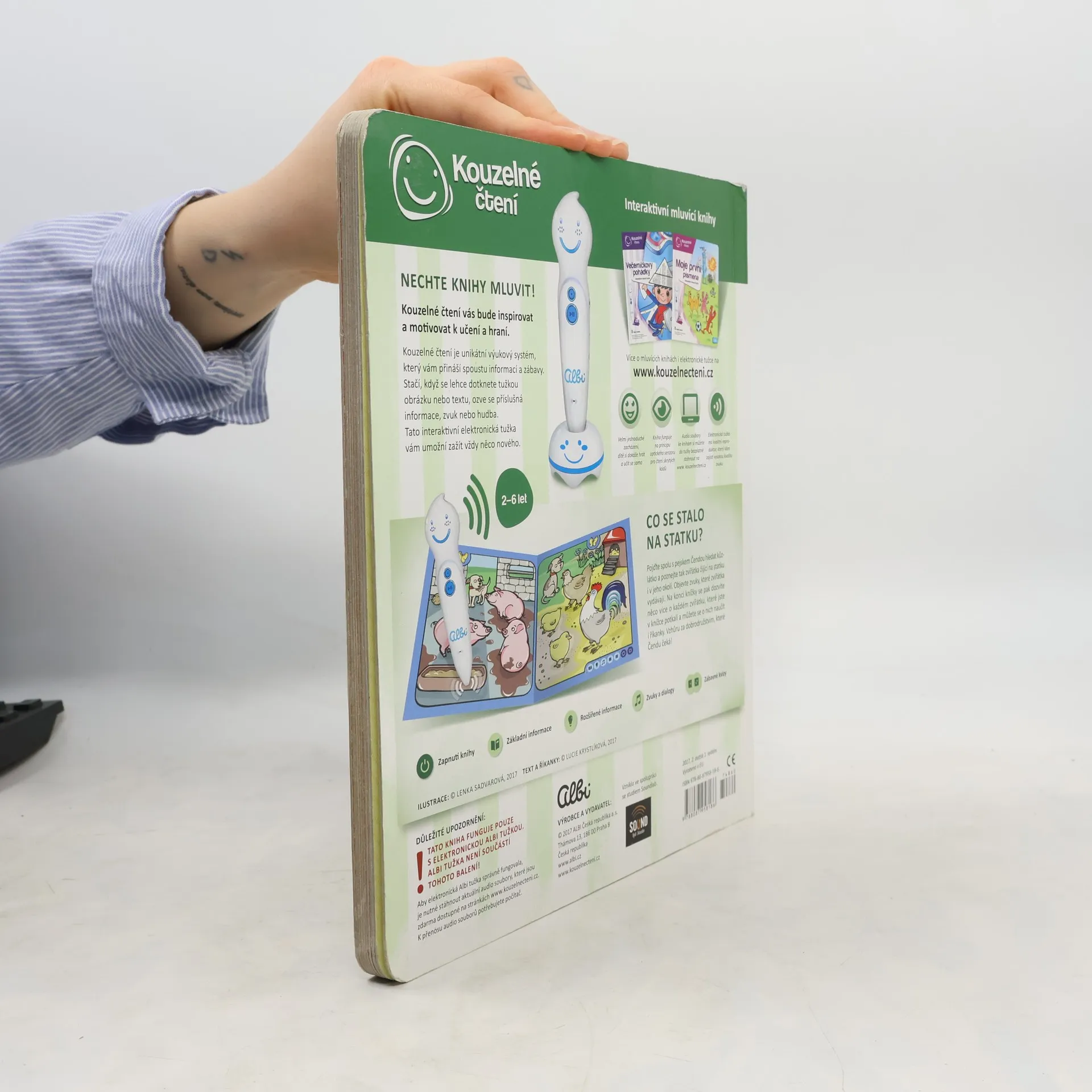 Interaktivní kniha Zvířátka na statku pozve nejmenší děti na dobrodružnou výpravu pejska Čendy za ztraceným kůzlátkem. Kniha z edice Kouzelné čtení je plná zábavných říkanek a informací o tom, co zažil malý pejsek na statku a kousek za ním. V naučné knize Zvířátka na statku objeví zvuky, které zvířátka vydávají. Na konci knížky se pak dozví více informací o každém zvířátku, které v knížce potkali a můžou se o nich naučit i říkanky. Vzhůru za dobrodružstvím, které Čendu čeká! Namluvil Jaroslav Plesl. Ilustrace Lenka Sadvarová. Text a říkanky Lucie Krystlíková. Kniha obsahuje přes 1000 zvuků a textů.