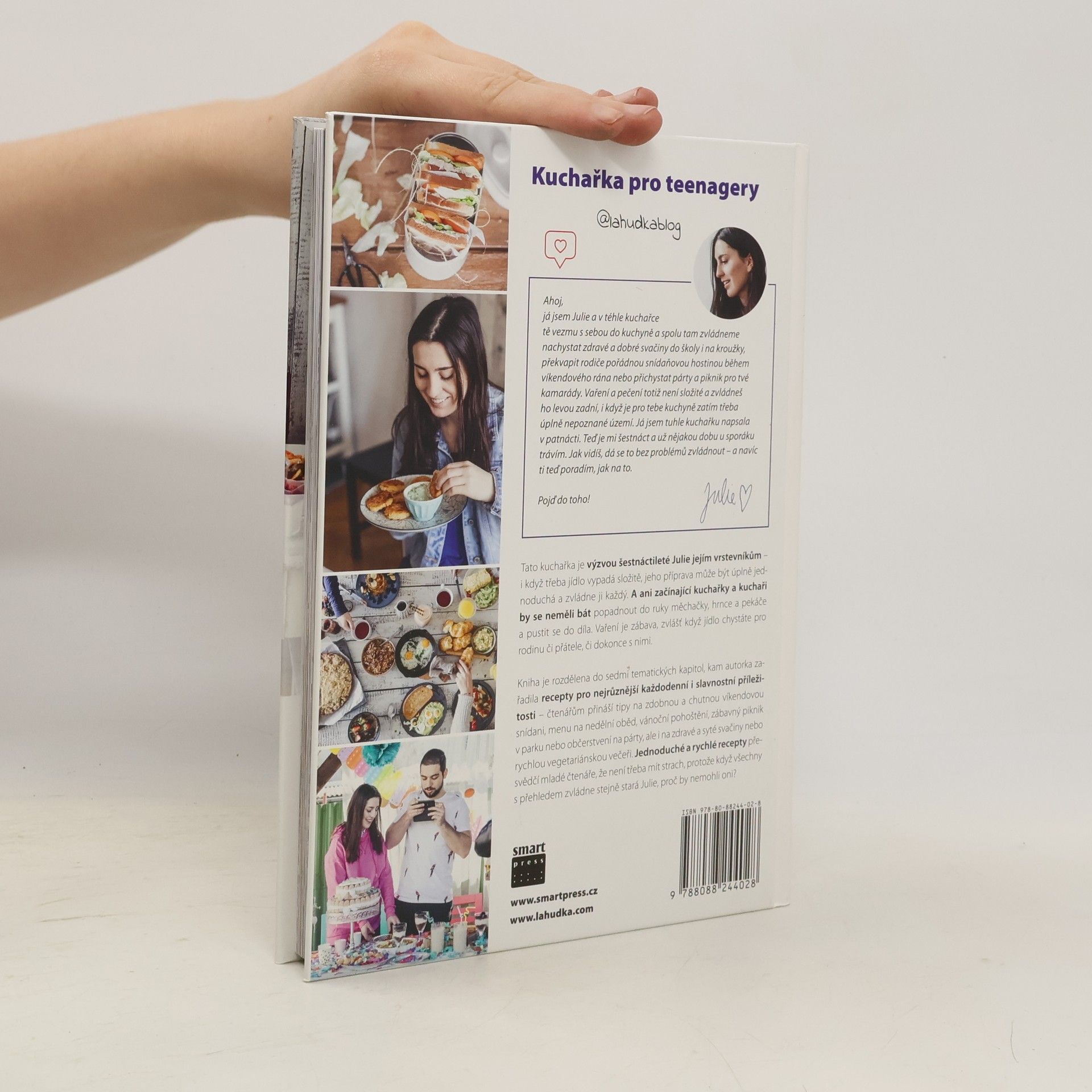 Tato kniha může být báječným dárkem ke Dni dětí, za vysvědčení či k Vánocům. Kuchařka pro teenagery je výzvou šestnáctileté Julie jejím vrstevníkům – i když třeba jídlo vypadá složitě, jeho příprava může být úplně jednoduchá a zvládne ji každý. A ani začínající kuchařky a kuchaři by se neměli bát popadnout do ruky měchačky, hrnce a pekáče a pustit se do díla. Vaření je zábava, zvlášť když jídlo chystáte pro rodinu či přátele, či dokonce s nimi. Kniha je rozdělena do sedmi tematických kapitol, kam autorka zařadila recepty pro nejrůznější každodenní i slavnostní příležitosti – čtenářům přináší tipy na zdobnou a chutnou víkendovou snídani, menu na nedělní oběd, vánoční pohoštění, zábavný piknik v parku nebo občerstvení na párty, ale i na zdravé a syté svačiny nebo rychlou vegetariánskou večeři. Jednoduché a rychlé recepty přesvědčí mladé čtenáře, že není třeba mít strach, protože když všechny s přehledem zvládne stejně stará Julie, proč by nemohli oni?