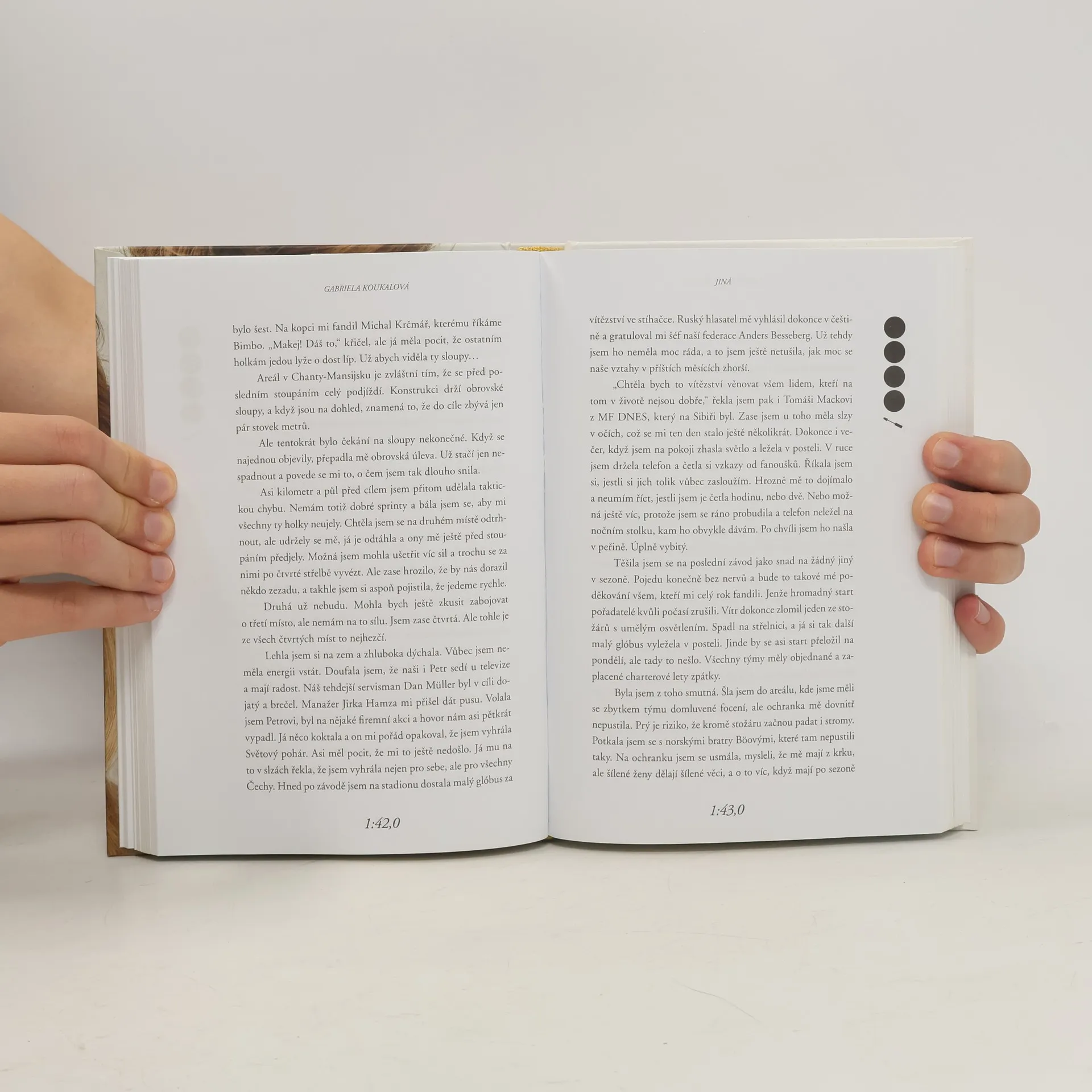 Zažila slávu, úspěchy, medaile. Ale taky spoustu okamžiků, o kterých dosud nikomu neřekla. O některých proto, že se bála, o dalších proto, že se styděla. Teď je Gabriela Koukalová poprvé odhaluje ve své biografii. Vychází sportovní i osobní zpověď nejlepší biatlonistky naší historie. Mistryně světa, olympijské medailistky, vítězky Světového poháru. Kniha je psaná autenticky v první osobě a odhaluje zákulisí tréninkové dřiny, nejdůležitějších závodů i mysli vrcholové sportovkyně v těch nejvypjatějších momentech. Gabriela jde ve svých pocitech na dřeň. Popisuje nejen velké výhry, ale i to, co se skrývá za nimi. Třeba desítky probrečených nocí, spory s rodiči a trenéry, ne vždy ideální atmosféra v týmu nebo těžká nemoc, kterou před světem dlouho tajila… Součástí knihy jsou i dosud nezveřejněné fotografie.