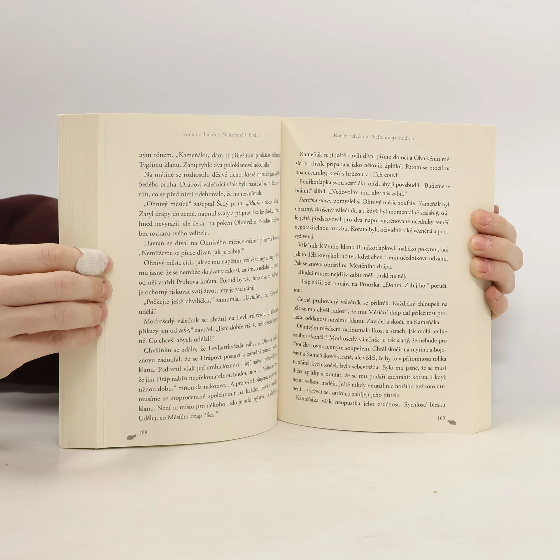 Po tragické smrti Modré Hvězdy se vůdcem Hromového klanu stává Ohnivous - nyní Ohnivý měsíc. Záhy je donucen postavit se čelem svému osudu, když jeho nepřítel Dráp přivede celý les na pokraj hrozivé smrtící bitvy. Pochopí Ohnivý měsíc, co znamená tajemné proroctví, které vyslovila Modrá hvězda? Zvládne ochránit nejen svůj klan, ale i celý les? Nenechte si ujít velkolepé finále populární série Kočičí válečníci!