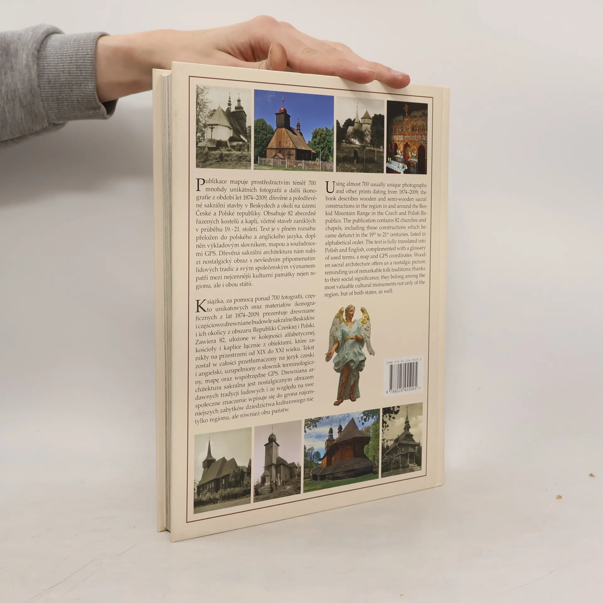 Publikace mapuje prostřednictvím téměř 700 mnohdy unikátních fotografií a další ikonografie z období let 1874-2009 dřevěné a polodřevěné sakrální stavby v Beskydech a okolí na území České a Polské republiky. Obsahuje 82 abecedně řazených kostelů a kaplí, včetně staveb zaniklých v průběhu 19. - 21. století. Text je v plném rozsahu přeložen do polského a anglického jazyka, doplněn výkladovým slovníkem, mapou a souřadnicemi GPS. Dřevěná sakrální architektura nám nabízí nostalgický obraz s nevšedním připomenutím lidových tradic a svým společenským významem patří mezi nejcennější kulturní památky nejen regionu, ale i obou států.