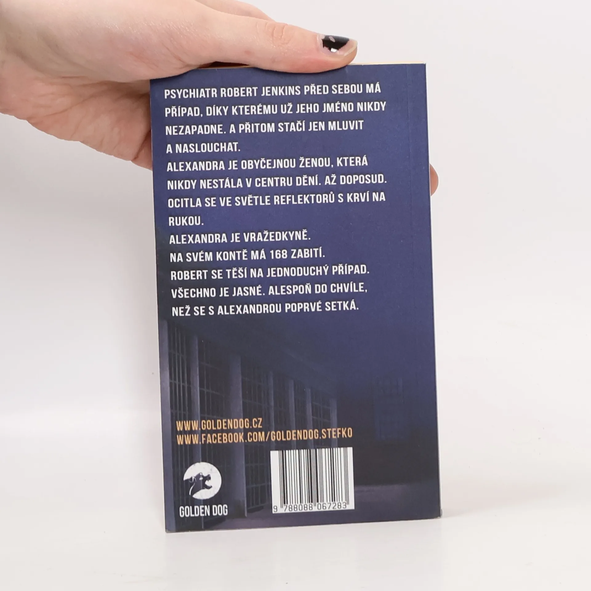 Robert Jenkins je uznávaný soudní psychiatr. Před sebou má případ, díky kterému už jeho jméno nikdy nezapadne. A přitom stačí jen mluvit a naslouchat. Alexandra je obyčejnou ženou, která nikdy nestála v centru dění. Až doposud. Ocitla se ve světle reflektorů s krví na rukou. Alexandra je vražedkyně. Na svém kontě má 168 zabití. Robert se těší na jednoduchý případ. Všechno je jasné. Alespoň do chvíle, než se s Alexandrou poprvé setká.