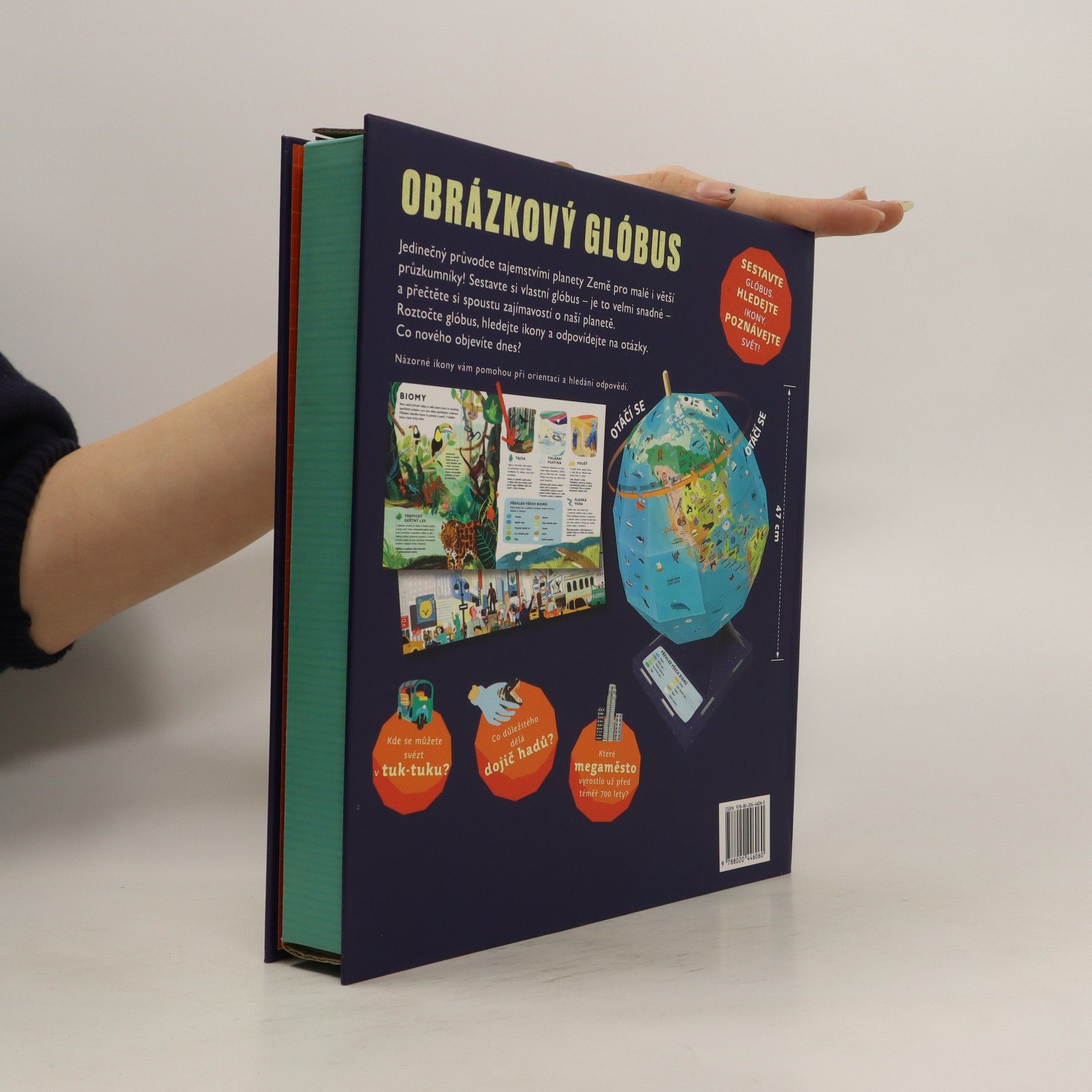Vydejte se na cestu kolem světa a nechte se nadchnout krásami ciziny. Je to snadné! Nemusíte si balit kufr, prošlápnout boty ani kupovat letenku, stačí si sestavit téměř půl metru velký glóbus, roztočit ho a pomocí názorných ikon a průvodcovské brožurky prozkoumat zákoutí planety Země. Box obsahuje Knížku pro malé objevitele a všechny součástky potřebné k sestavení otočného glóbusu! Jaká zajímavost na vás asi čeká dnes?