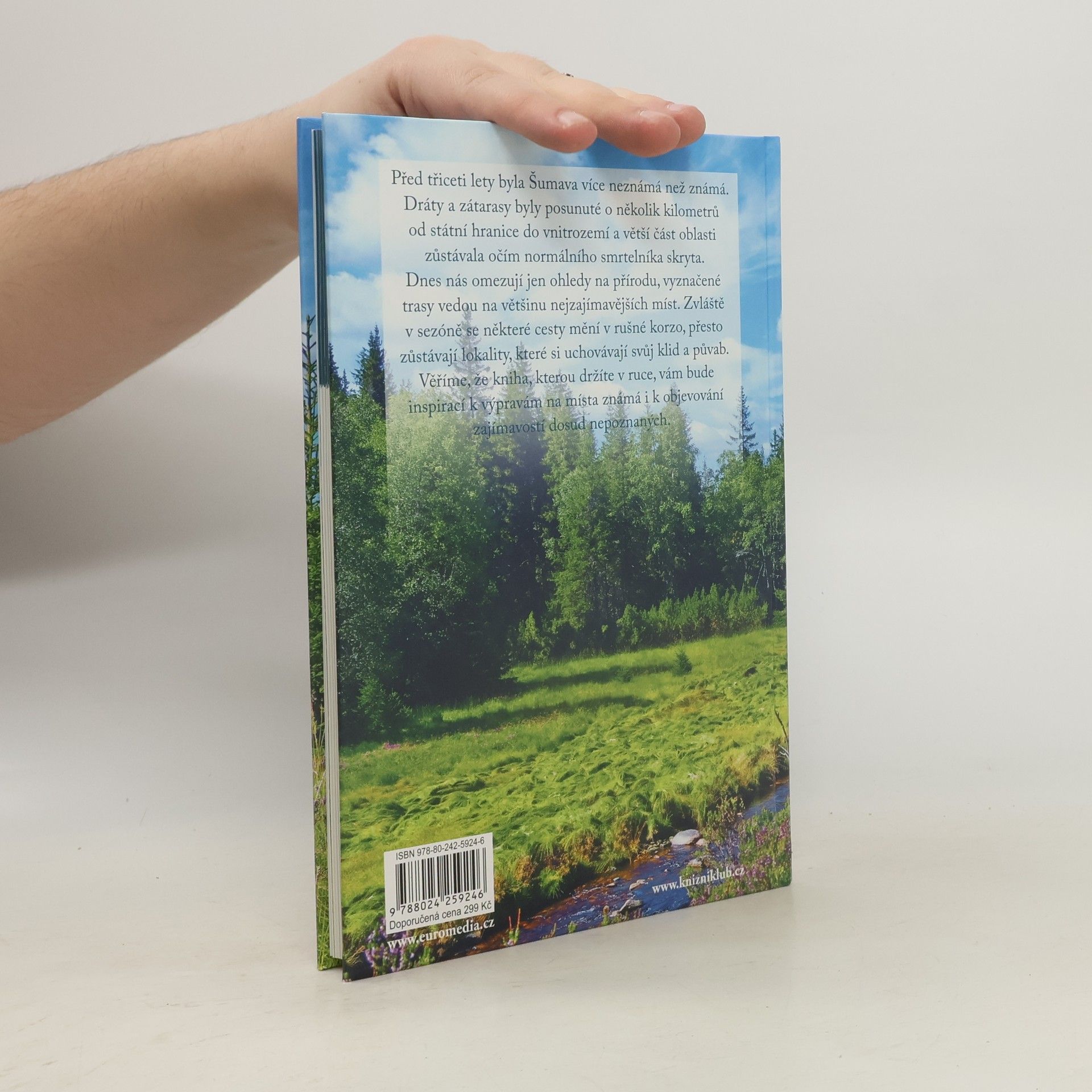 Opravdový chrám přírody, největší oáza zeleně uprostřed Evropy, romantika i nostalgie, dramatické příběhy a záhady – je těžké vystihnout charakteristiku Šumavy, pohoří, ke kterému se musíme pořád vracet. Je to rozmanitá oblast, kterou je dobré poznávat více srdcem než očima, vnímat nálady a krásy v průběhu všech ročních období, hledat nová místa a vracet se na místa již navštívená. Kniha se zabývá přírodou, historií i památkami a odhaluje, jak Šumava dokáže na člověka působit a jaká tajemství skrývá. Vedle známých turistických center a historických měst (Vimperk, Prachatice) si připomeneme i zaniklé osady a vesnice, místa, která byla dlouhá roky veřejnosti nepřístupná – právě na Šumavě přece byla ta nejostřeji střežená hranice, pověstná „železná opona“. Vedle známých přírodních lokalit (Boubínský prales, Černé a Čertovo jezero) nechybí vyprávění o oblastech, kam zdaleka tolik návštěvníků nepřijde (Milešický prales), o místech znovuobjevených v posledních desetiletích (Prášilské jezero, jezero Laka, Plechý a Plešné jezero, pravý břeh Lipenské přehrady), o úžasných technických dílech (Schwarzenberský kanál), o originální architektuře (volarské domy). Závěrečnou kapitolu tvoří přehled značených turistických cest a tipy na nejhezčí výlety.