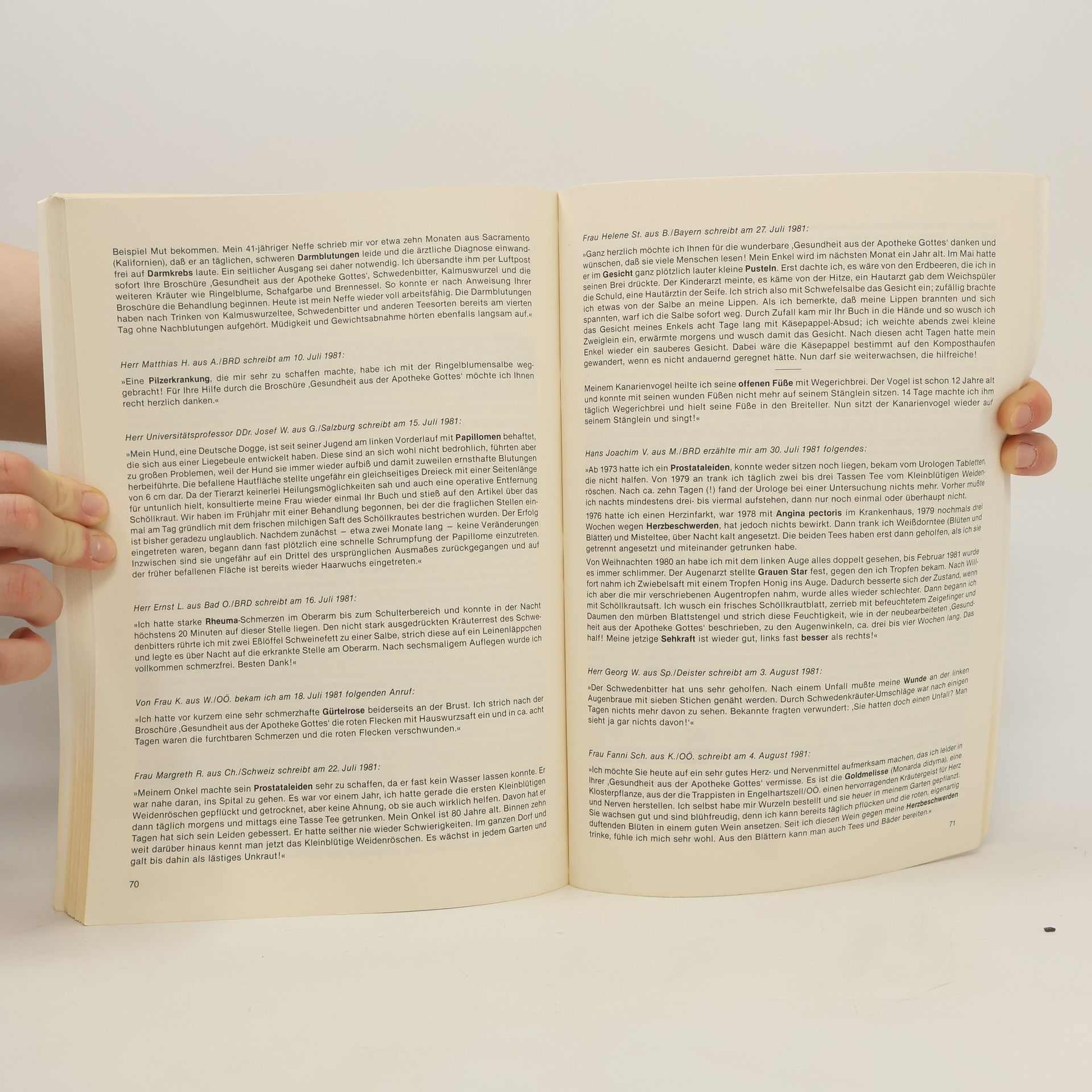 Briefe und Berichte von Heilerfolgen mit dem Kräuterbuch „Gesundheit aus der Apotheke Gottes“