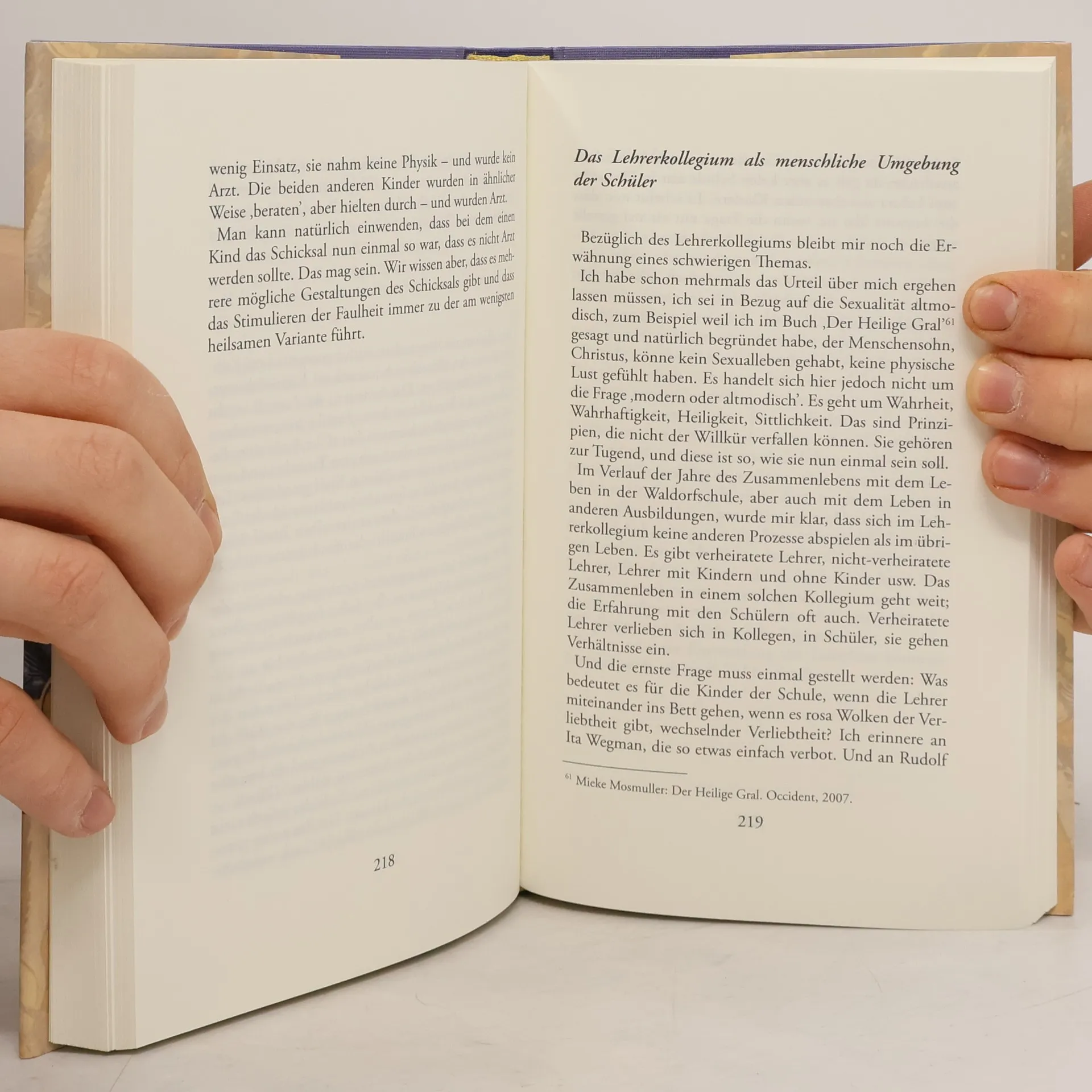 Im Kinde erscheint eine Individualität in einer seelischen Hülle, die weit oder weniger weit entwickelt ist. Die Entwicklung, die diese seelisch-geistige Individualität hinter sich hat, ‚verursacht’ das Lernen. Es ist nicht allein eine Gedächtnisfähigkeit, denn diese kommt vielleicht nur aus der erblichen Anlage, ist dann für die Individualität ein Geschenk. Es ist ebenso wenig nur ein gesundes Gehirn. Die Individualität lebt in der Ideenwelt, wie Plato es einst lehrte. Sie bringt einen Weisheitsschatz mit, der in den ersten Jahren den Leib formt und gestaltet, in den zweiten sieben Jahren jedoch eine mehr seelische Bedeutung hat. Die Weisheit der Welt, die Weltgedanken, trägt sie unbewusst in sich. Erziehen ist ein ‚stufenweise geboren werden lassen’, der Lehrer ist bei der Geburt Mithelfer, er gebiert nicht selbst. Er muss kundig sein, aber auch staunen können über das Wunder dieser dreifachen Geburt: des Ätherleibes, des Astralleibes, des Ich. Und der Schüler nimmt immer mehr selbst den Prozess in seine Hand, bis er mit dem 21. Jahre seine volle eigene Verantwortung übernimmt und den Weg ins Leben selbstständig gehen kann, durch viele weitere Verwandlungen.