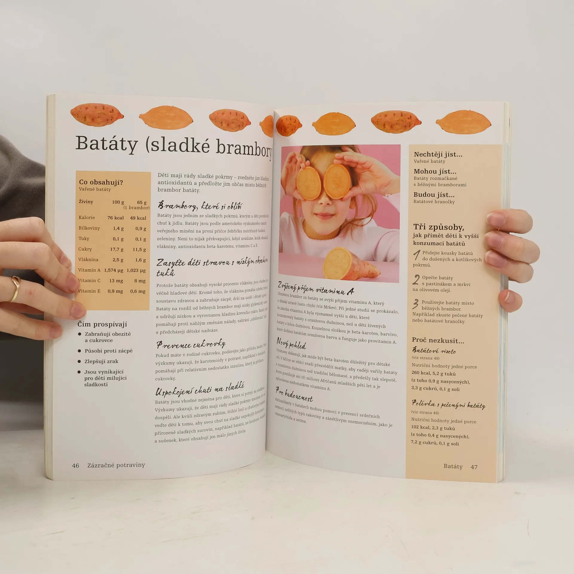 Kniha vás seznámí s 25 zázračnými potravinami, jež zlepší zdravotní stav vašich dětí. Prozradí vám, co obsahují, čím vynikají a jak je nejlépe využijete. 25 zázračných potravin, které by neměly chybět v dětském jídelníčku, 50 receptů na chutné pokrmy pro děti každého věku. Nápady a rady, jak přimět děti, aby jedly, co jim prospíva