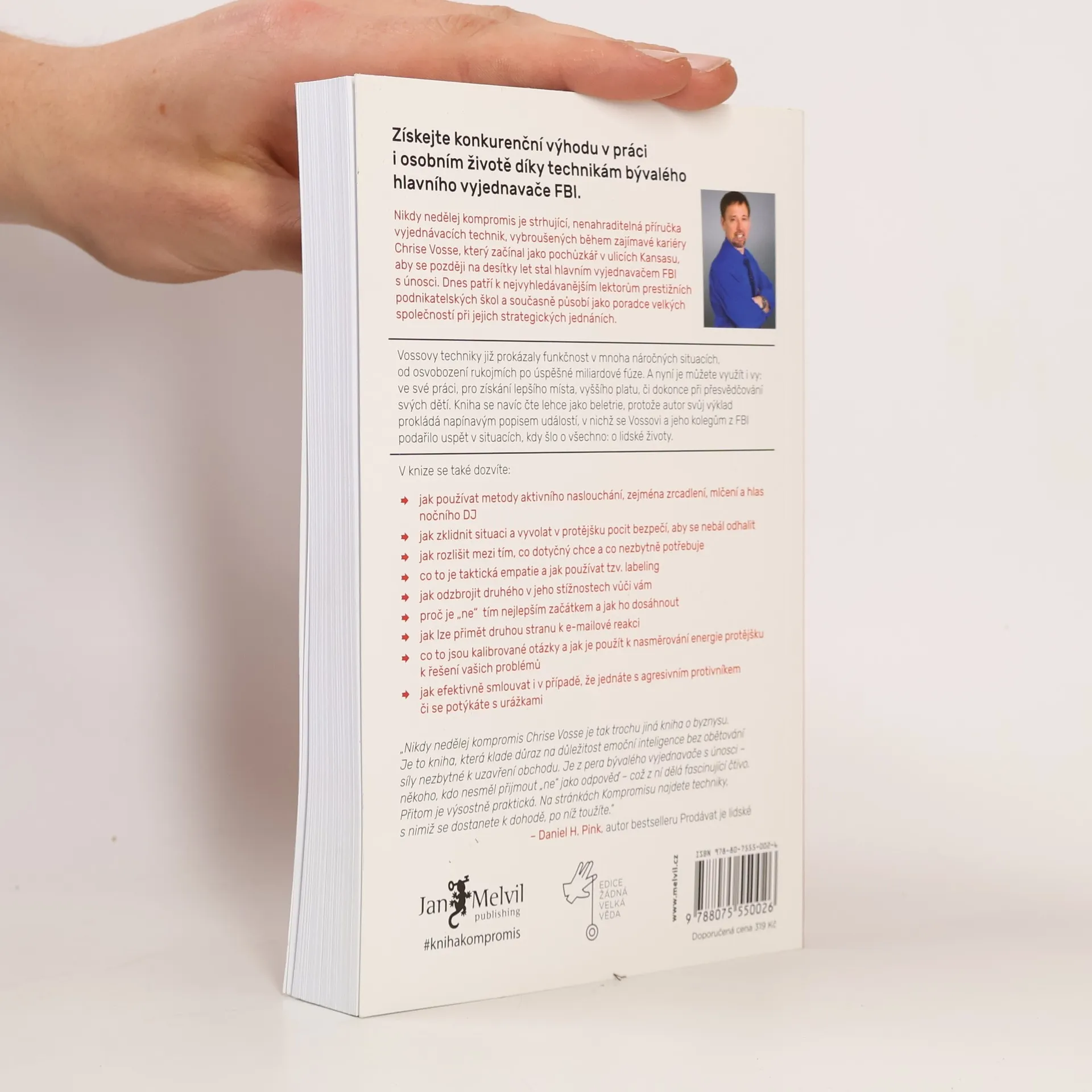 Život je plný vyjednávání, ať už se jedná o nákup auta, pořízení domu nebo sjednání podmínek s partnerem či dětmi. Klasické knihy jako Getting to Yes či Crucial Conversations obohatily arzenál vyjednavačů, avšak některé metody se ukázaly jako neefektivní a potřebují aktualizaci. Chris Voss, bývalý hlavní vyjednavač FBI, přináší nový, na neurovědě podložený přístup. Začínal jako běžný policista a postupně se vypracoval na specialistu na vyjednávání s nebezpečnými zločinci, kde šlo o lidské životy. V těchto situacích nelze dělat kompromisy. Vossův přístup, založený na dlouholeté praxi a výzkumech FBI, nenahrazuje předchozí metody, ale rozvíjí je a překonává. FBI jako první začala v jednáních pracovat s emocemi, zatímco dříve se vyučoval přístup založený na racionálním jednání obou stran. Po 25 letech ve FBI se Voss zaměřil na firemní vyjednávání a stal se vyhledávaným konzultantem, který asistuje u obchodních jednání Fortune 500 a přednáší na prestižních školách jako Harvard či MIT. Jeho kniha představuje významný a praktický příspěvek k tématu vyjednávání, které ovlivňuje naše osobní i pracovní životy.