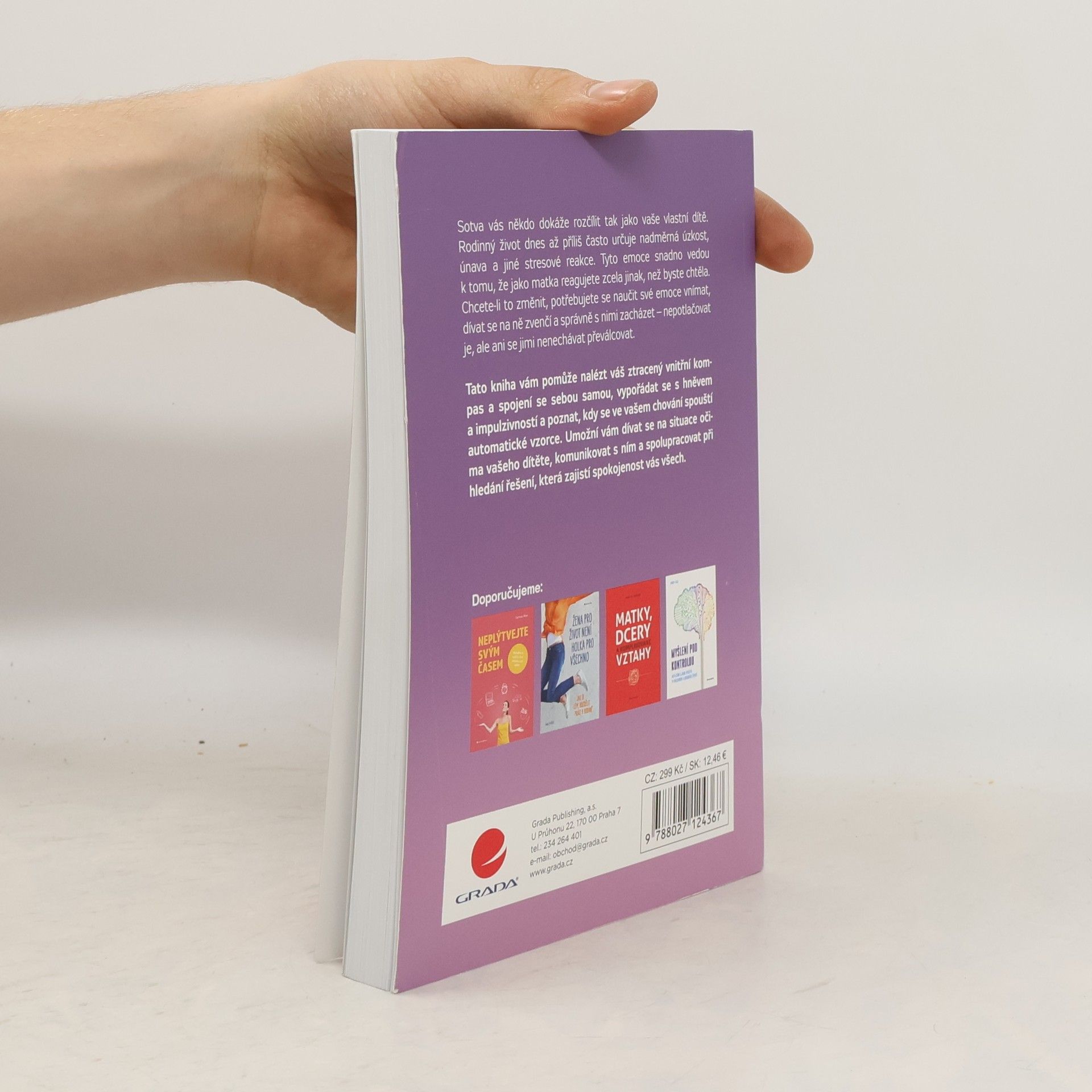 Sotva vás někdo dokáže rozčílit tak jako vaše vlastní dítě. Rodinný život dnes až příliš často určuje nadměrná úzkost, únava a jiné stresové reakce. Tyto emoce snadno vedou k tomu, že jako matka reagujete zcela jinak, než byste chtěla. Chcete-li to změnit, potřebujete se naučit své emoce vnímat, dívat se na ně zvenčí a správně s nimi zacházet – nepotlačovat je, ale ani se jimi nenechávat převálcovat. Tato kniha vám pomůže nalézt váš ztracený vnitřní kompas a spojení se sebou samou, vypořádat se s hněvem a impulzivností a poznat, kdy se ve vašem chování spouští automatické vzorce. Umožní vám dívat se na situace očima vašeho dítěte, komunikovat s ním a spolupracovat při hledání řešení, která zajistí spokojenost vás všech.