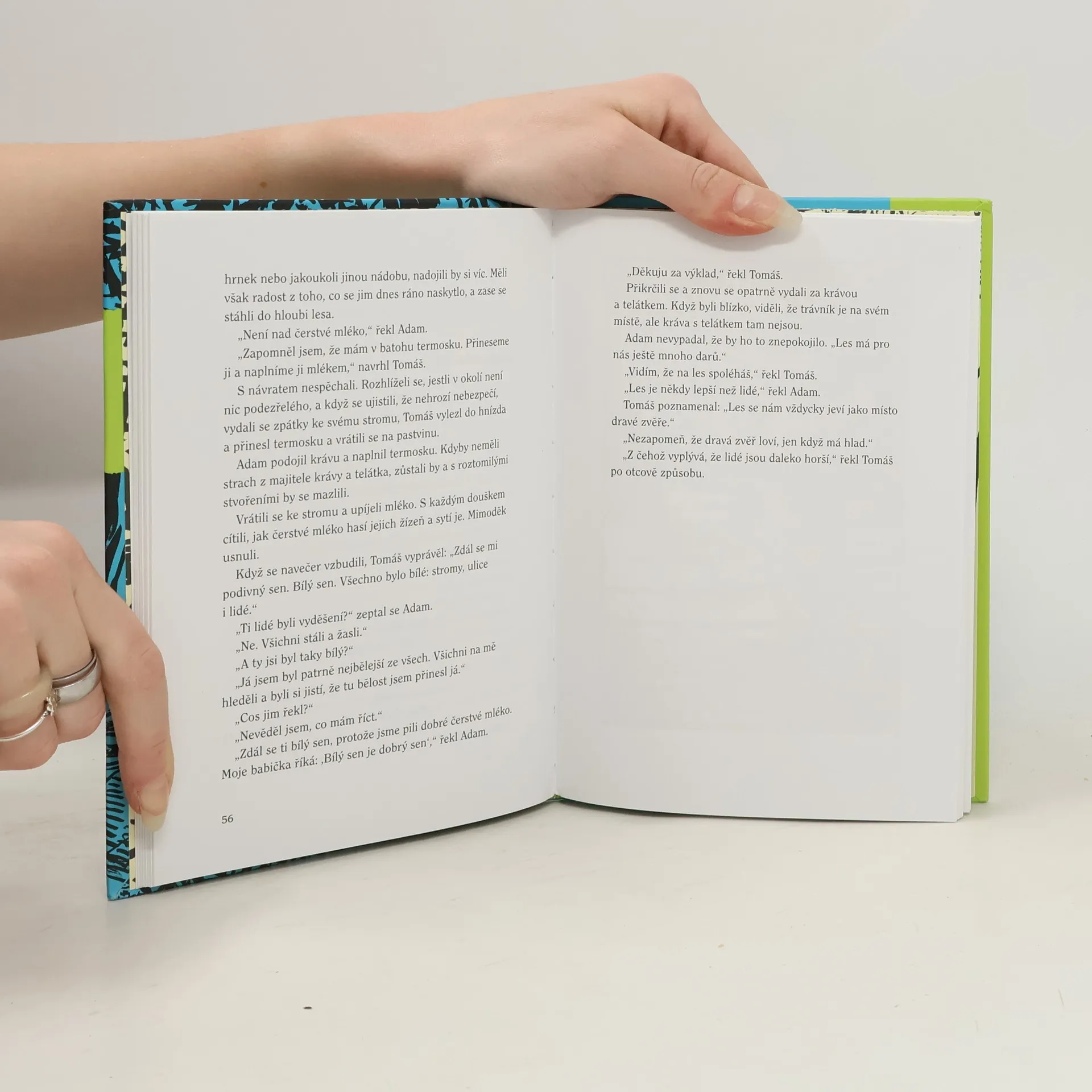 Je válka a židovští chlapci Adam a Thomas se musí ukrývat v lese a čekat, než bude ve vesnici bezpečno a mámy si pro ně zase přijdou. Mají dost jídla a umí si poradit, ale zásoby se pomalu tenčí, příroda se s chlapci nemazlí a hlad je nemilosrdný. Vtom se jako spásný anděl zjeví holčička Mína. Není nakonec opravdu z jiného světa? Dojemný dětský příběh cenami ověnčeného hebrejského autora o neobyčejné odvaze, hlubokém porozumění a síle, která se skrývá tam, kde bychom ji někdy nečekali.