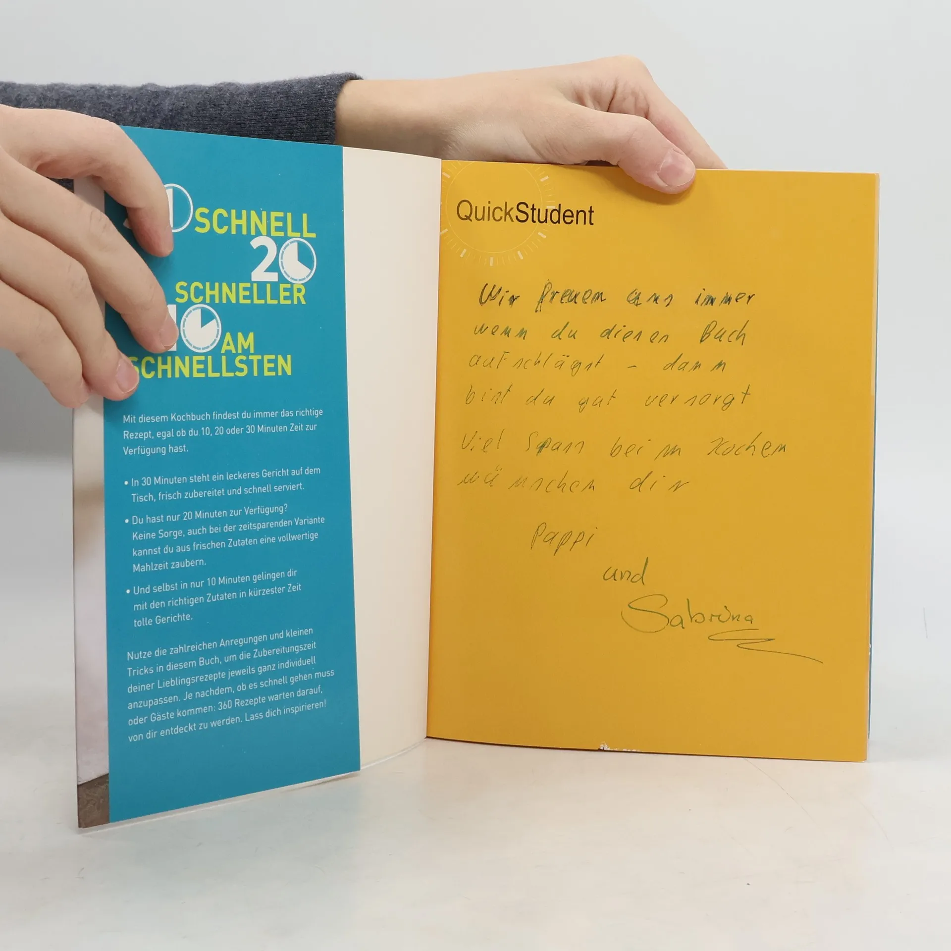 Du hast nach einem anstrengenden Tag an der Uni keine Lust noch lange am Herd zu stehen, willst vor deiner Verabredung noch eine leckere Kleinigkeit essen, bist aber auch kein Freund von Fast Food? Du bekommst spontan Gäste und musst in kürzester Zeit ein tolles Gericht auf den Tisch zaubern, und das möglichst ohne dabei arm zu werden? Die neue Quick-Reihe bietet Kochmuffeln und Eiligen eine tolle und abwechslungsreiche Auswahl an schnellen und einfachen Gerichten die je nach Zeit, Lust und Laune in 30, 20 oder 10 Minuten zubereitet werden können. Ein Muss für jede WG-Küche!
