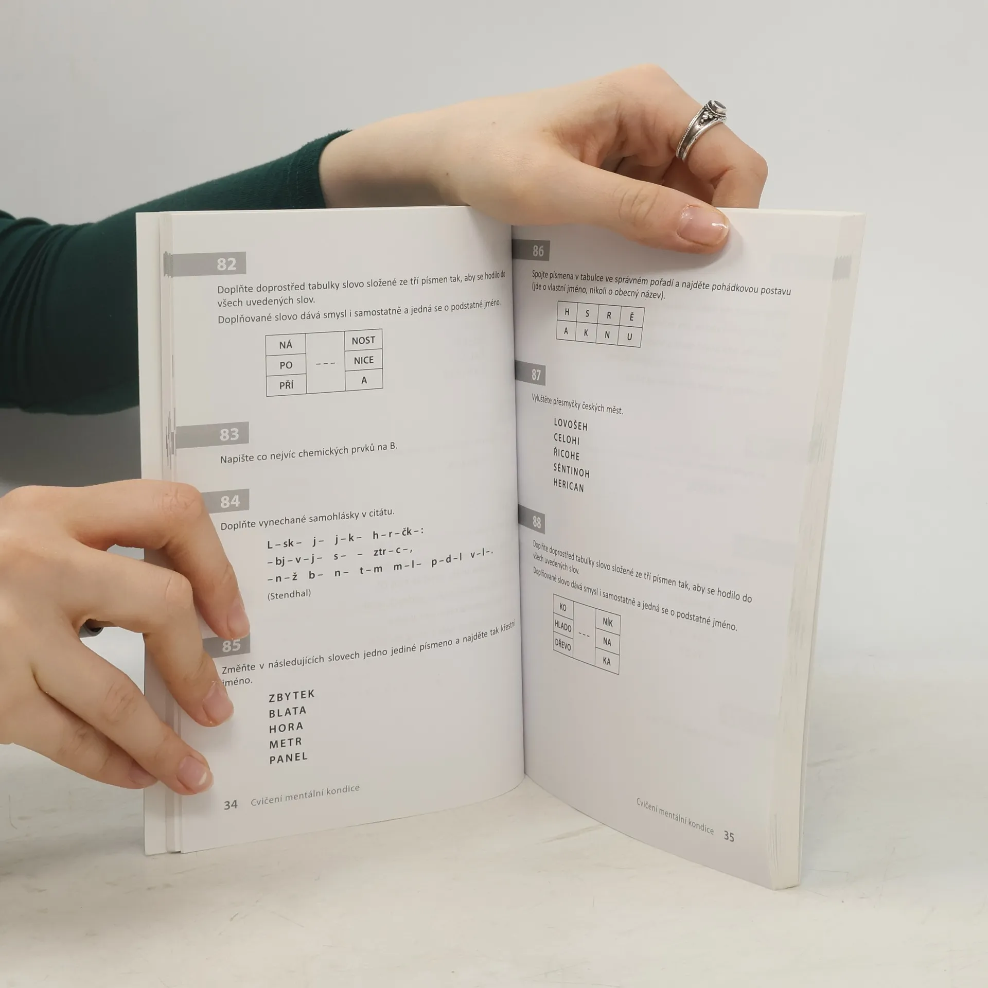 Víte, že kromě tělesných rozcviček existují i ty mentální? Tato kniha vám jich nabízí přesně 365, aby ani jediný den nezůstal němý. Můžete je řešit postupně, ale na druhé straně není nutné omezovat se na jediné cvičení denně. Různé typy úkolů jsou záměrně promíchány, někdy vyžadují chvíli zkoušení a hledání. Kniha je určena pro všechny, kdo rádi luští, pracují na své mentální kondici a flexibilitě, kdo rádi přemýšlejí a hrají si s písmeny, slovy a jazykem.