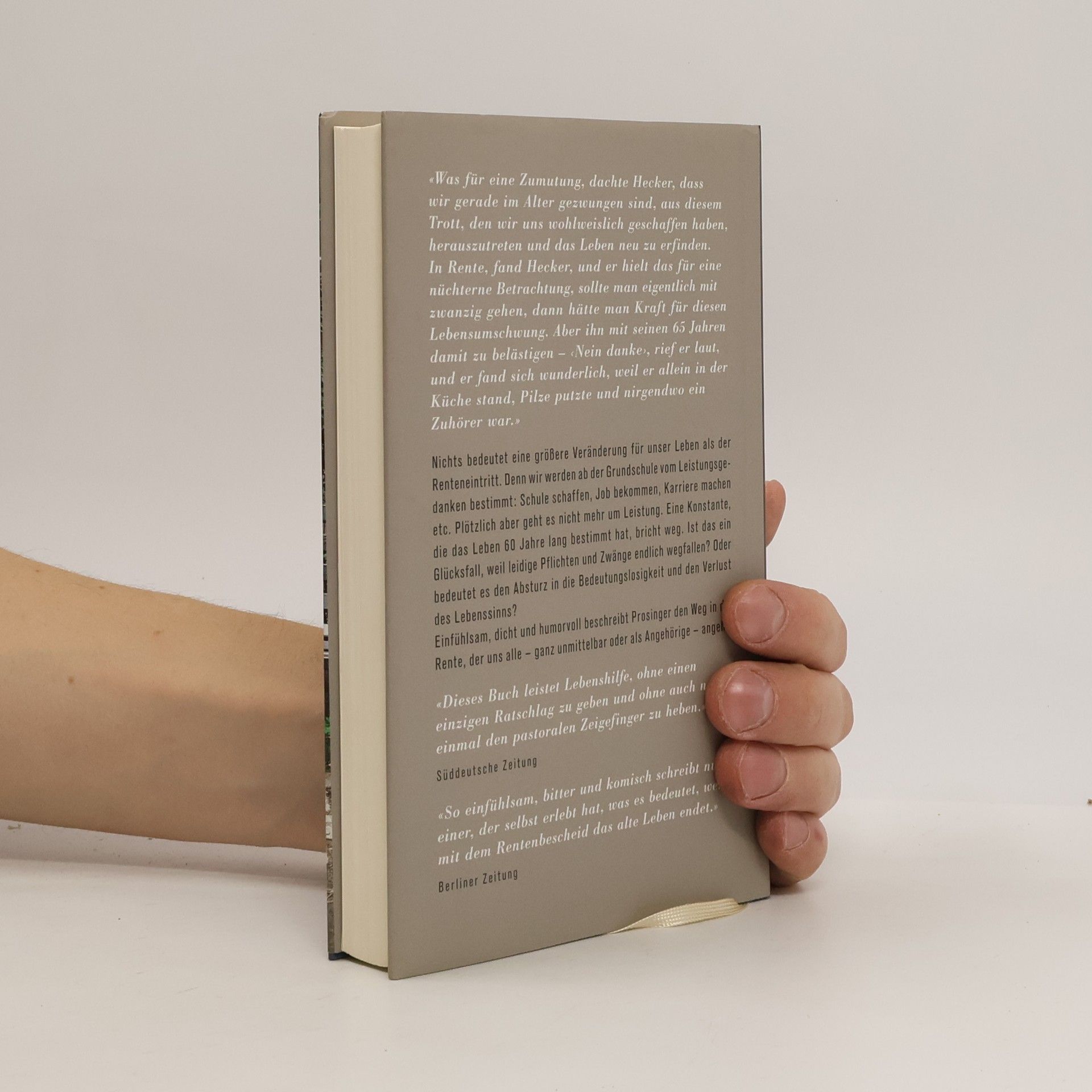 «Was für eine Zumutung, dachte Hecker, dass wir gerade im Alter gezwungen sind, aus diesem Trott, den wir uns wohlweislich geschaffen haben, herauszutreten und das Leben neu zu erfinden. In Rente, fand Hecker, und er hielt das für eine nüchterne Betrachtung, sollte man eigentlich mit zwanzig gehen, dann hätte man Kraft für diesen Lebensumschwung. Aber ihn mit seinen 65 Jahren damit zu belästigen – ‹Nein danke›, rief er laut, und er fand sich wunderlich, weil er allein in der Küche stand, Pilze putzte und nirgendwo ein Zuhörer war.» Nichts bedeutet eine größere Veränderung für unser Leben als der Renteneintritt. Denn wir werden ab der Grundschule vom Leistungsgedanken bestimmt: Schule schaffen, Job bekommen, Karriere machen etc. Plötzlich aber geht es nicht mehr um Leistung. Eine Konstante, die das Leben 60 Jahre lang bestimmt hat, bricht weg. Ist das ein Glücksfall, weil leidige Pflichten und Zwänge endlich wegfallen? Oder bedeutet es den Absturz in die Bedeutungslosigkeit und den Verlust des Lebenssinns? Einfühlsam, dicht und humorvoll beschreibt Prosinger den Weg in die Rente, der uns alle – ganz unmittelbar oder als Angehörige – angeht.