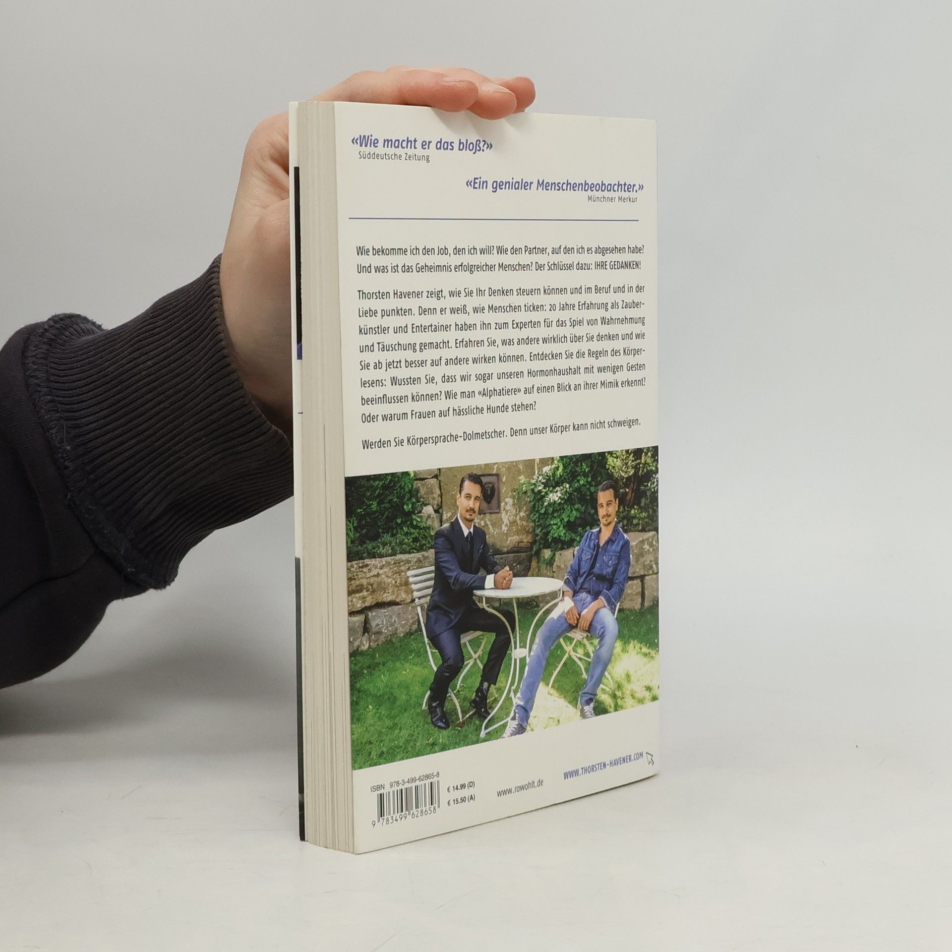 Wie bekomme ich den Job, den ich will? Wie gewinne ich den Partner meiner Träume? Der Schlüssel liegt in unseren Gedanken! Thorsten Havener zeigt, wie Sie Ihr Denken steuern und in Beruf und Liebe erfolgreich sein können. Mit 20 Jahren Erfahrung als Zauberkünstler hat er ein tiefes Verständnis für Wahrnehmung und Täuschung entwickelt. Lernen Sie, was andere wirklich über Sie denken und wie Sie besser auf andere wirken können. Entdecken Sie die Regeln des Körperlesens: Wussten Sie, dass Gesten sogar unseren Hormonhaushalt beeinflussen können? Erfahren Sie, wie man „Alphatiere“ an ihrer Mimik erkennt und warum Frauen oft zu hässlichen Hunden hingezogen werden. Werden Sie Körpersprache-Dolmetscher, denn unser Körper kann nicht lügen. Der Körperleser-Dreisatz zeigt, dass zuerst der Gedanke, dann der Körper und schließlich die Worte kommen. Achten Sie darauf, Ihr Gegenüber zuerst anzulächeln, bevor Sie sprechen. Die Fußhaltung verrät, in welche Richtung jemand denkt. Zeigen Ihre Fußspitzen auf Ihr Gegenüber? Ein Schritt auf die Person zu kann deren Einstellung zu Ihnen offenbaren. Das Wackel-Dackel-Prinzip demonstriert, dass Nicken ansteckend ist und Ihr Gegenüber dazu bringt, eher „ja“ zu sagen. Entschlüsseln Sie den Körpersprache-Code von Frauen und Männern in Beruf und Liebe, unterstützt durch wissenschaftliche Erkenntnisse und faszinierende Experimente.