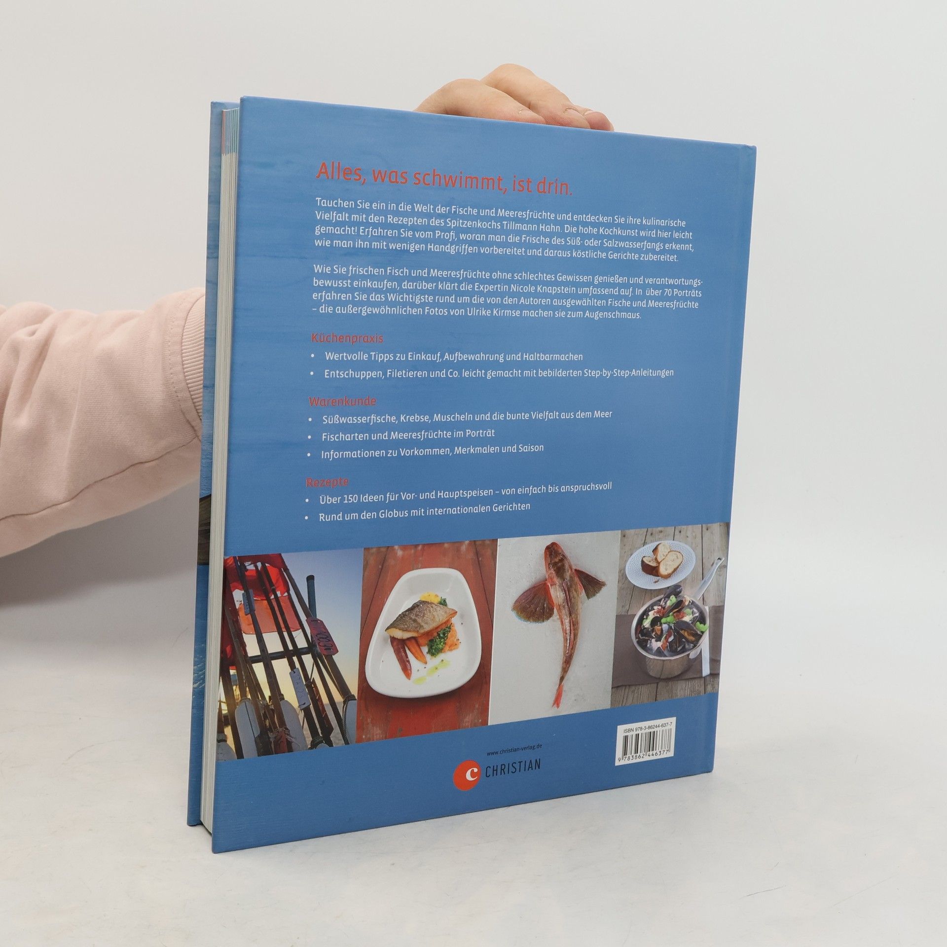 In über 150 internationalen Rezepten vom renommierten Fischkoch Tillmann Hahn, Porträts zu beliebten Fischarten und Meeresfrüchten sowie Stepfotos zu Küchenpraxis wie Filetieren, Entschuppen etc. entdecken Genießer Salz- und Süßwasserfische. Aber 'darf' man überhaupt noch Fisch essen? In umfassender, verständlicher Weise klärt die Expertin Nicole Knapstein über verantwortungsbewussten Genuss auf.