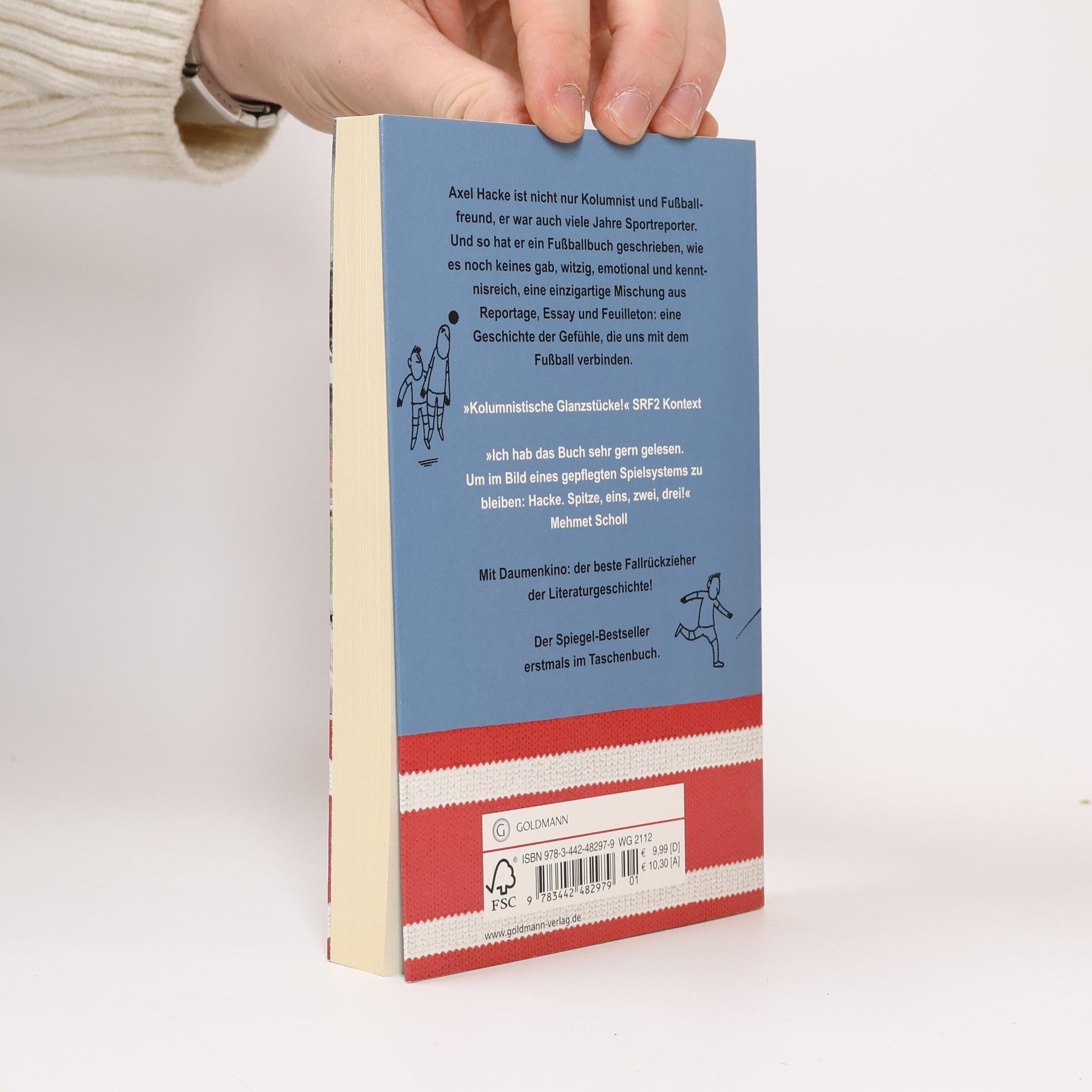 DAS Fußballbuch: eine einzigartige Mischung aus Reportage, Essay und Feuilleton – witzig und kenntnisreich. „Als ich elf Jahre alt war, spielten wir Fußball mit allem, was sich treten ließ. Auf dem Pausenhof kickten wir mit flachgedrückten Kakaotüten. Auf dem Heimweg von der Schule kickten wir mit zusammengedrücktem Butterbrotpapier. Am Nachmittag im Park kickten wir sogar mit einem Ball. Zum Kicken war uns alles recht.“ So fing es an für Axel Hacke, der nicht nur Fußballfreund ist, sondern auch viele Jahre Sportreporter war. In diesem Buch spürt er den Gefühlen nach, die in unserem fußballbegeisterten Land fast jeder kennt: der Liebe zum Spiel, der Treue zum Verein, der Wut auf den Gegner, der Sehnsucht nach dem Tor, dem Fußball als Obsession ... Ausstattung: Daumenkino, zweifarbig