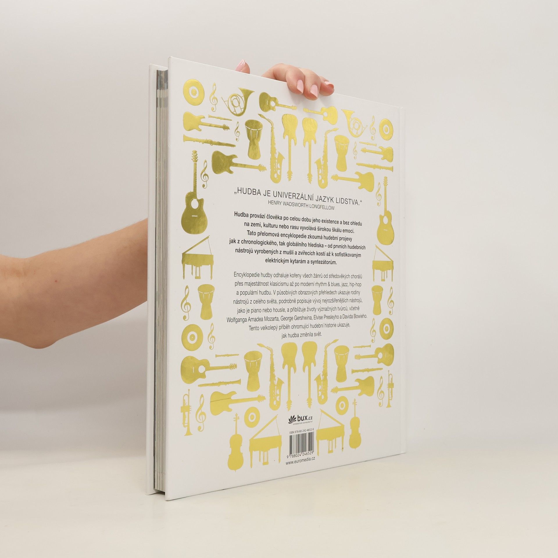 Hudba je encyklopedie, jaká tady ještě nebyla. V chronologickém pořádku a v doprovodu exkluzivního obrazového doprovodu představuje vývoj hudby celého světa od prehistorie až po současnost. Provází nás postupně všemi hudebními žánry, seznamuje s nezbytnou hudební teorií, uvádí známé i netradiční hudební nástroje. Zmiňuje množství skladatelů a interpretů, těm největším z nich věnuje obsáhlejší medailonky. Všichni, kdo se zajímají o hudbu ve všech jejích podobách, se mohou těšit na unikátní poznávací cestu napříč žánry a staletími. Možná se pak budou umět zaposlouchat do hudby novýma ušima.