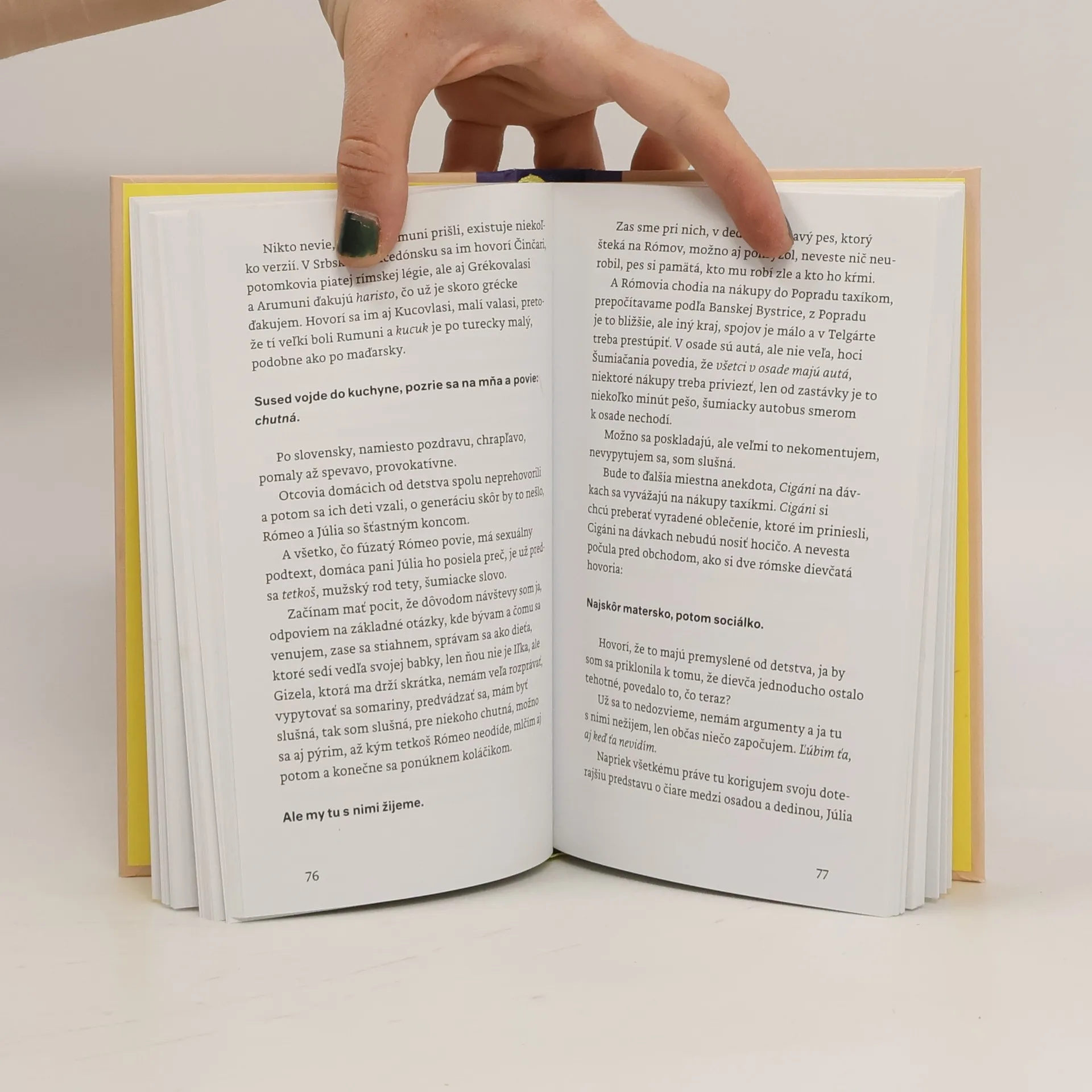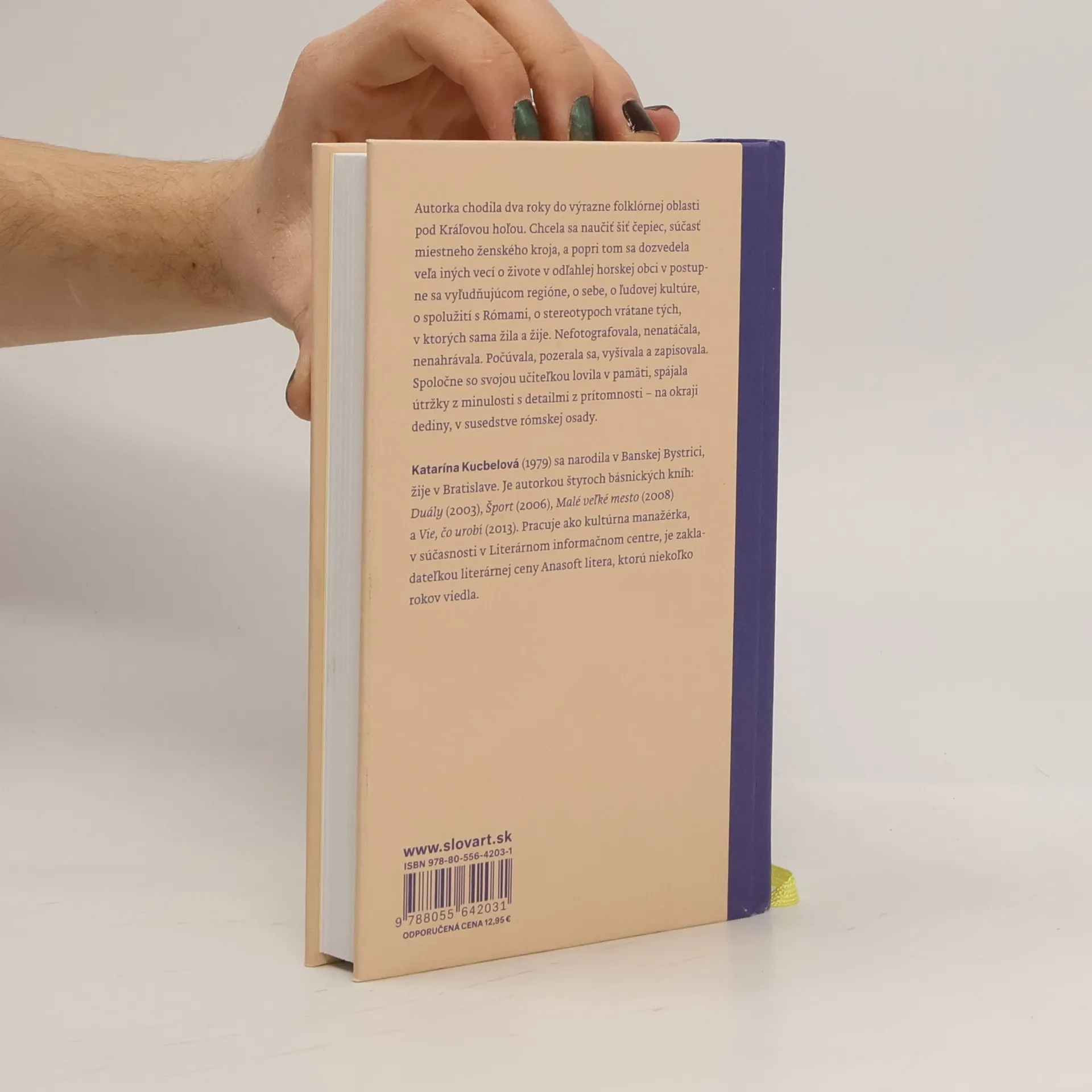 Autorka tejto knihy chodila dva roky do výrazne folklórnej oblasti pod Kráľovou hoľou. Chcela sa naučiť šiť čepiec, súčasť miestneho ženského kroja a popri tom sa dozvedela veľa iných vecí o živote v odľahlej horskej obci v postupne sa vyľudňujúcom regióne, o sebe, o ľudovej kultúre, o spolužití s Rómami, o stereotypoch, vrátane tých, v ktorých sama žila a žije. Nefotografovala, nenatáčala, nenahrávala. Počúvala, pozerala sa, vyšívala a zapisovala. Spoločne so svojou učiteľkou lovila v pamäti, spájala útržky z minulosti s detailmi z prítomnosti, na okraji dediny, v susedstve rómskej osady.