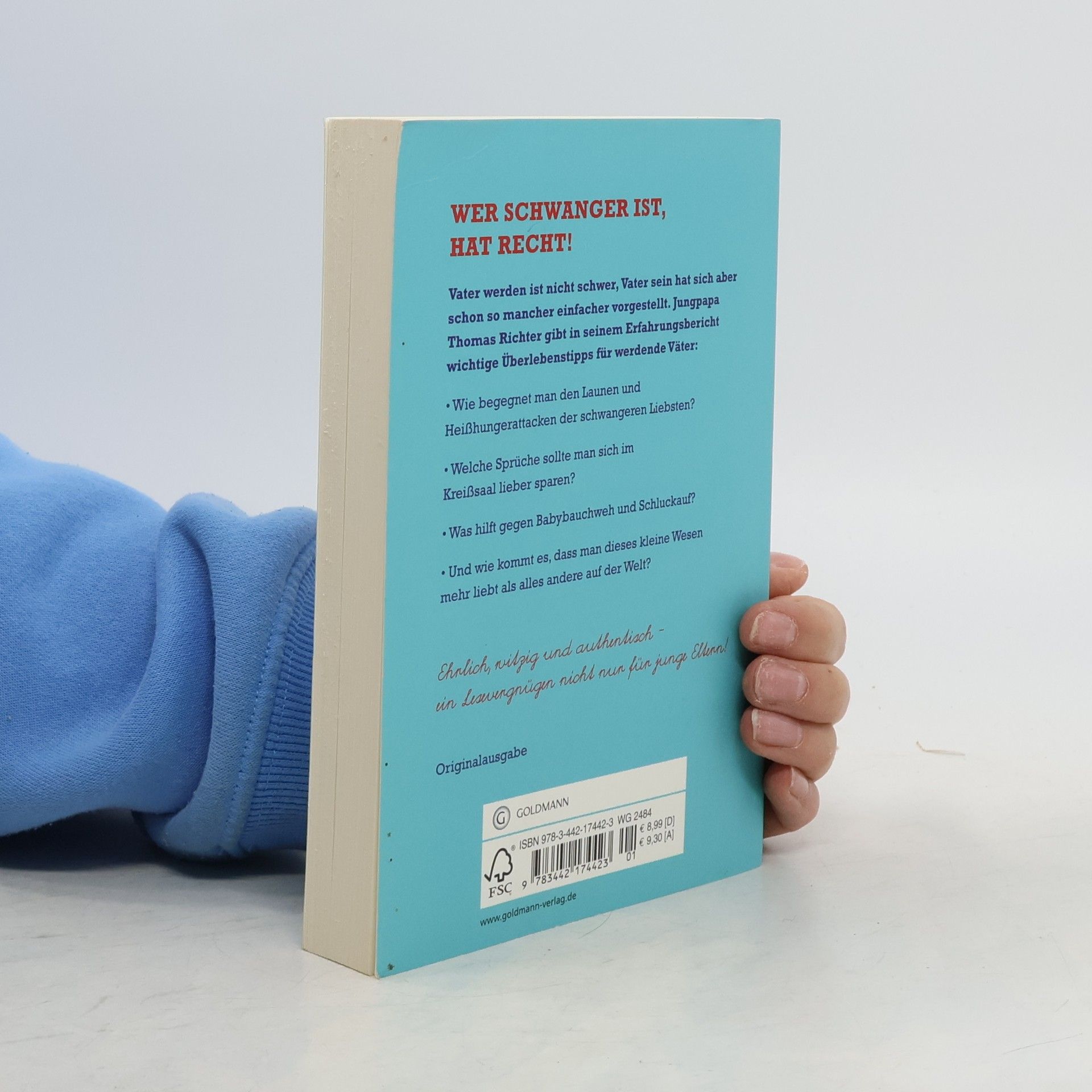 Jungpapa Thomas Richter gibt in seinem Erfahrungsbericht wichtige Überlebenstipps für werdende Väter: Wie begegnet man den Launen und Heißhungerattacken der schwangeren Liebsten? Warum ist sein Bauch fast dicker als ihrer? Welche Sprüche sollte man sich im Kreißsaal lieber sparen? Was hilft gegen Babybauchweh und Schluckauf? Und wie kommt es, dass man dieses kleine Wesen mehr liebt als alles andere auf der Welt? Ehrlich, witzig und authentisch – ein Lesevergnügen nicht nur für junge Eltern!