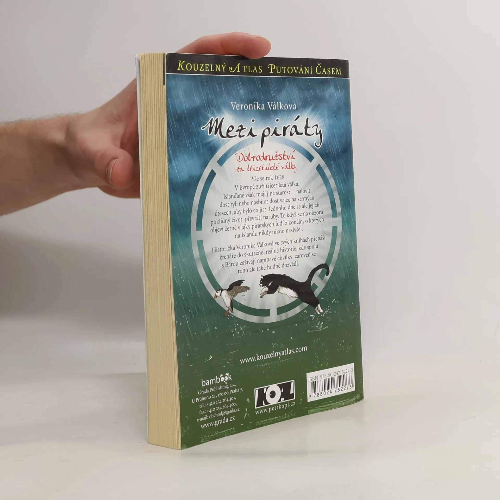 Až do téhle chvíle si Bára myslela, že v drnových domečcích žijí jen hobiti. Díky atlasu zjistila, že tak v minulosti žili i Islanďané. Zatímco v Evropě zuří třicetiletá válka, obyvatelé malého ostrůvku u islandského pobřeží mají jiné starosti – nalovit hodně ryb a nasbírat na strmých útesech dost vajec divokých ptáků, aby měli vůbec co jíst. Při obojím jde o život. Rybáře může na širém moři snadno překvapit nečekaná bouře a při sběru vajec stačí malá chyba, a nešťastník se zřítí z více než stometrové výšky do divokého příboje... Tohle ovšem Islanďané pokládají za takovou „každodenní normálku“. Ale jednoho dne se na obzoru objeví piráti...
