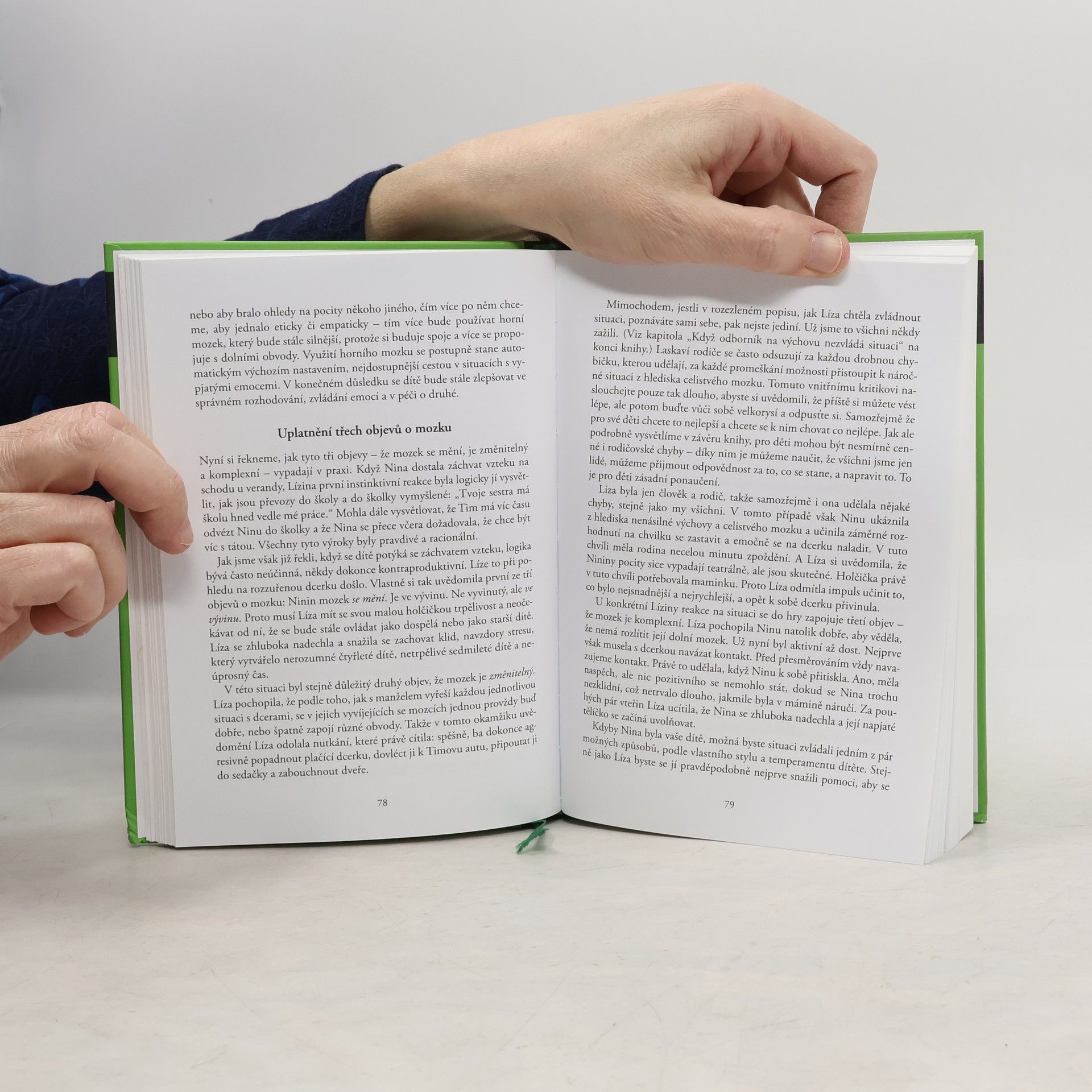 Záchvaty pláče či vzteku, spory nad domácími úkoly, hádky mezi sourozenci... podobné vypjaté situace obtížně zvládají nejen děti, ale i rodiče. Daniel Siegel a Tina Payneová-Brysonová v této knize poskytují rodičům a vychovatelům cenné rady, jak podobné okamžiky nejen přežít, ale též s nadhledem a výchovným záměrem zvládat. Autoři nabízejí výchovný přístup založený na nejnovějších poznatcích o vývoji mozku a konkrétní návod, jak klidně a laskavě navázat s dítětem kontakt, konstruktivně s ním komunikovat, ale zároveň mu jasně a důsledně vymezovat hranice. Příběhy ze života, vtipné ilustrace a přehledná shrnutí poskytují praktické rady, jak pracovat s vyvíjejícím se mozkem dítěte, klidně řešit konflikty a na základě této výchovné filozofie vést novou generaci ke šťastnému a spokojenému životu.