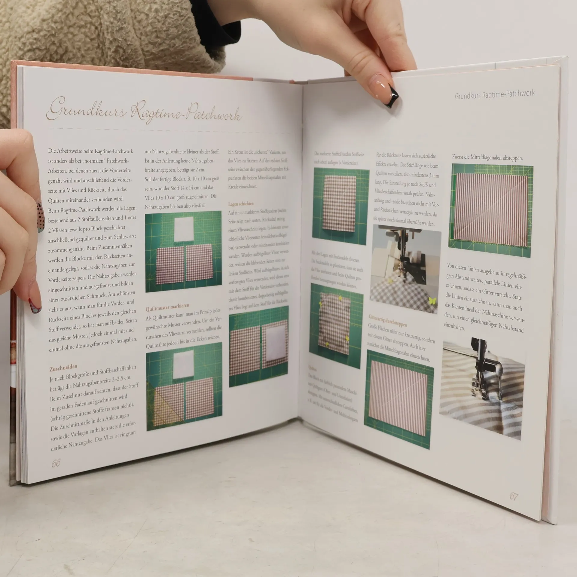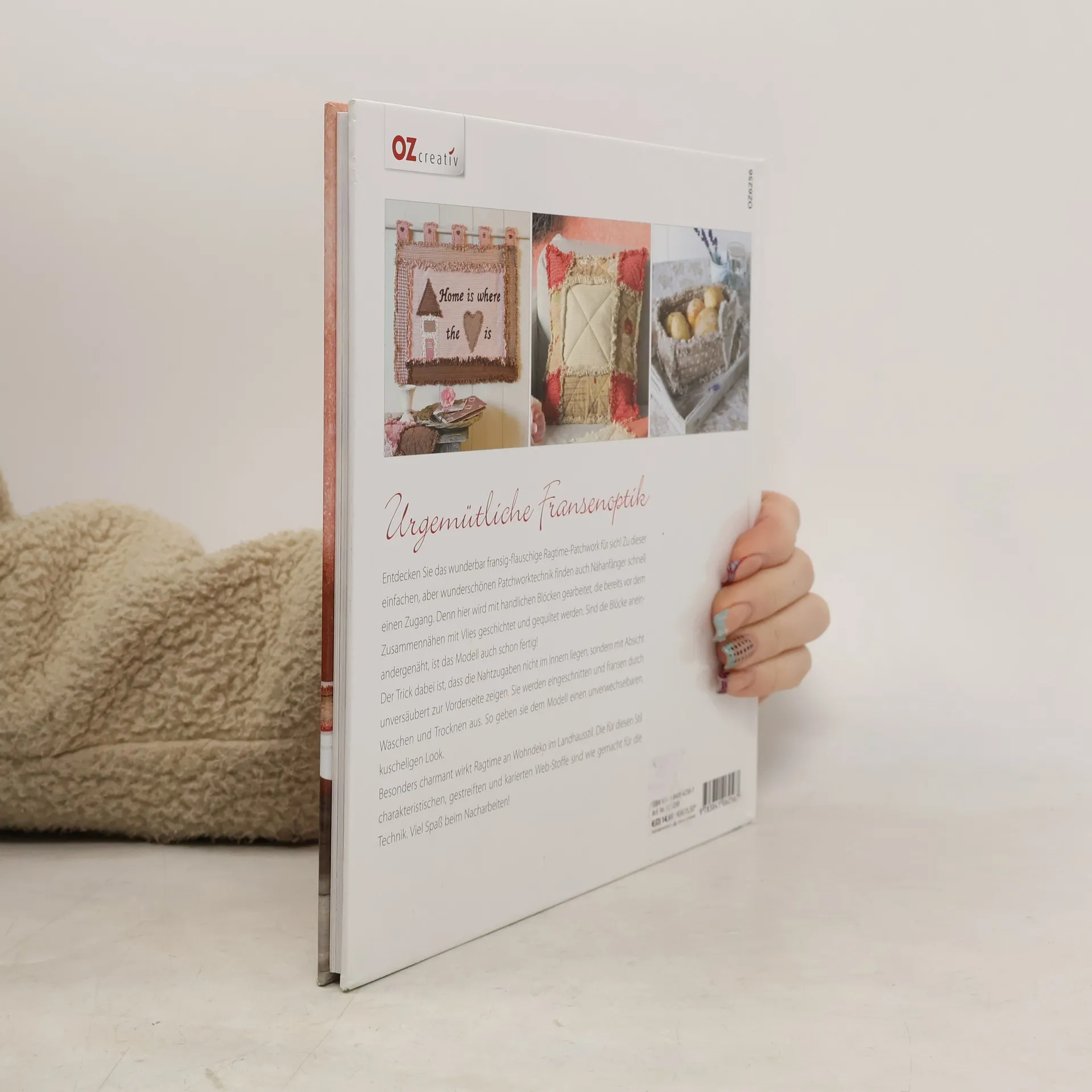 Urgemütliche Fransenoptik. Entdecken Sie das wunderbar fransig-flauschige Ragtime-Patchwork für sich! Zu dieser einfachen, aber wunderschönen Patchwork-Technik finden auch Nähanfänger schnell einen Zugang. Denn hier wird mit handlichen Blöcken gearbeitet, die bereits vor dem Zusammennähen mit Vlies geschichtet und gequiltet werden. Sind die Blöcke aneinander genäht, ist das Modell auch schon fertig! Der Trick dabei ist, dass die Nahtzugaben nicht im Innern liegen, sondern mit Absicht unversäubert zur Vorderseite zeigen. Sie werden eingeschnitten und fransen durch Waschen und Trocknen aus. So geben sie dem Modell einen unverwechselbaren, kuscheligen Look. Besonders charmant wirkt Ragtime an Wohndeko im Landhausstil. Die für diesen Stil charakteristischen gestreiften und karierten Web-Stoffe sind besonders geeignet für die Technik. Viel Spaß beim Nacharbeiten!