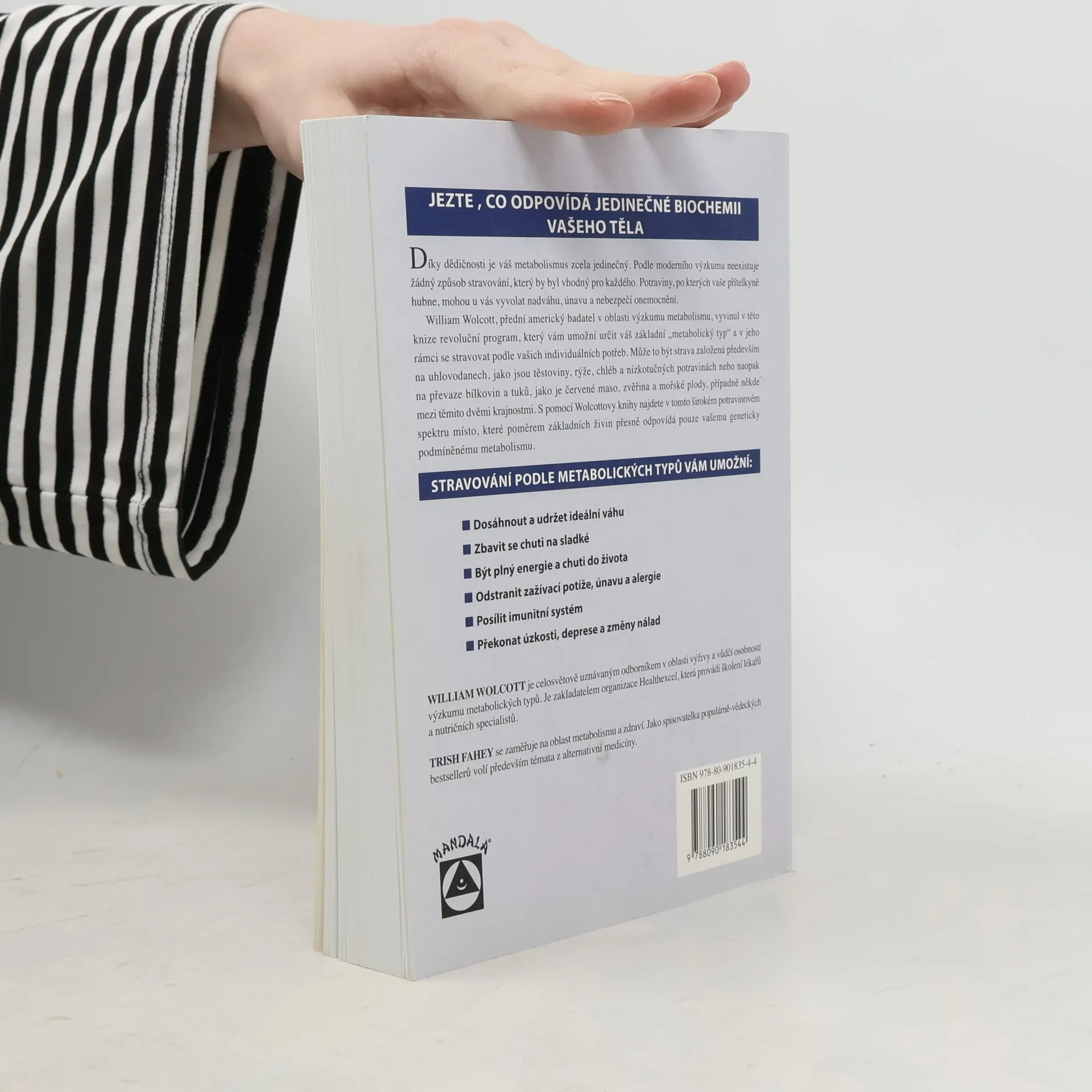 William Wolcott, přední americký badatel v oblasti výzkumu metabolismu, vyšel z předpokladu, že určitá strava, která někomu prospívá, u někoho může vyvolat onemocnění. A v této knize vyvinul revoluční program, který čtenářům umožní určit jejich základní „metabolický typ“, na kterém závisí způsob našeho stravování. Může to být buď strava založená především na uhlovodanech, jako jsou těstoviny, rýže, chléb a nízkotučných potravinách nebo naopak na převaze bílkovin a tuků, jako je červené maso, zvěřina a mořské plody, případně někde mezi těmito dvěmi krajnostmi. S pomocí Wolcottovy knihy čtenáři najdou v tomto širokém potravinovém spektru místo, které poměrem základních živin přesně odpovídá pouze jejich geneticky podmíněnému metabolismu. Tento způsob stravování pak čtenářům umožní mimo jiné dosáhnout a udržet ideální váhu, předejít nemocem a z dosavadních nemocí se uzdravit.