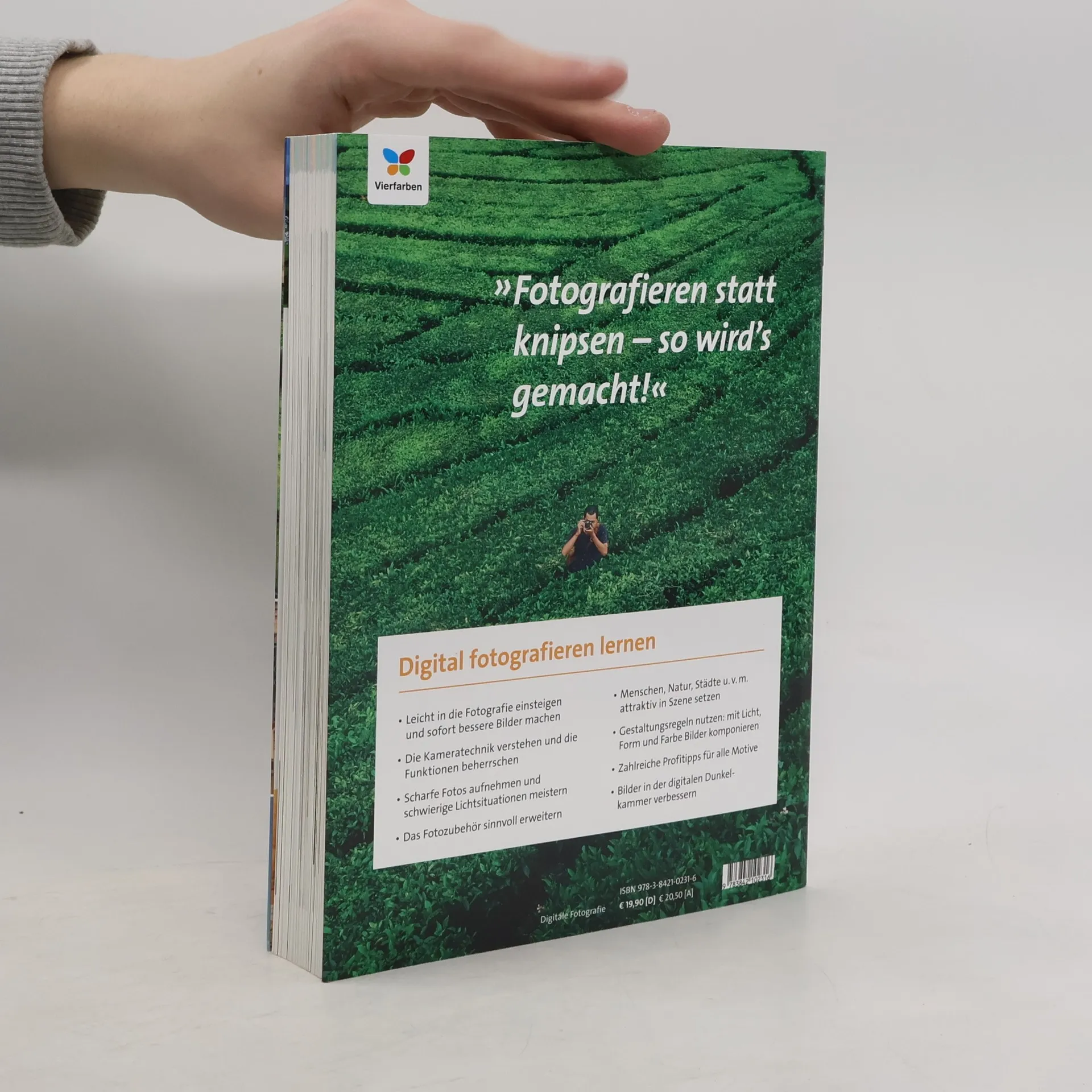 Fotografieren statt knipsen! Mit diesem Buch wird Ihnen das endlich auch gelingen. Dietmar Spehr führt Sie auf leichten Wegen durch die komplexe Fototechnik und macht Ihnen das magische Dreieck aus Blende, Belichtungszeit und ISO-Wert transparent. Schritt für Schritt übernehmen Sie die Steuerung, so dass Sie nicht mehr dem Automatikmodus Ihrer Kamera ausgeliefert sind. Belohnen Sie sich mit besseren Bildern als jemals zuvor: bezaubernde Porträts, imposante Landschaften, faszinierende Makroaufnahmen – mit diesem Buch steht Ihnen die Welt der Fotografie offen. Aus dem Inhalt: Die digitale Kamera: Von A bis Z erklärt Das Objektiv: So wichtig wie die Kamera Ohne Licht kein Bild: Die richtige Belichtung Scharfe Fotos: Den Fokus gezielt setzen Klares Weiß und schöne Farben Sinnvolles Zubehör und Kamerapflege Motive sehen und Bilder gestalten Menschen fotografieren Action- und Veranstaltungsfotos Natur- und Landschaftsbilder In der Stadt unterwegs Tiere fotografieren Makrofotografie Panorama und HDR Fotografiert, und dann: Die digitale Dunkelkammer Glossar: Wichtige Fachbegriffe kurz erklärt