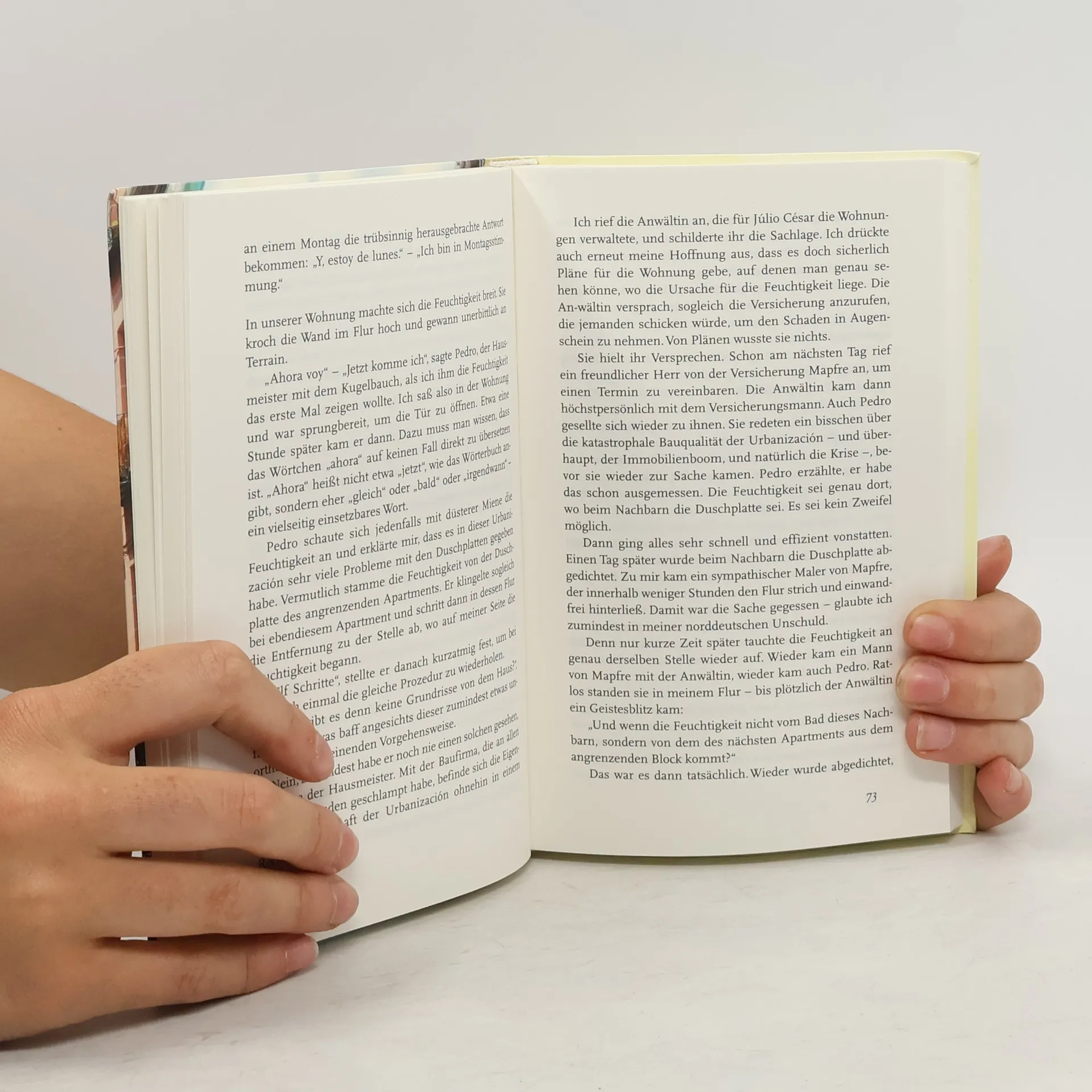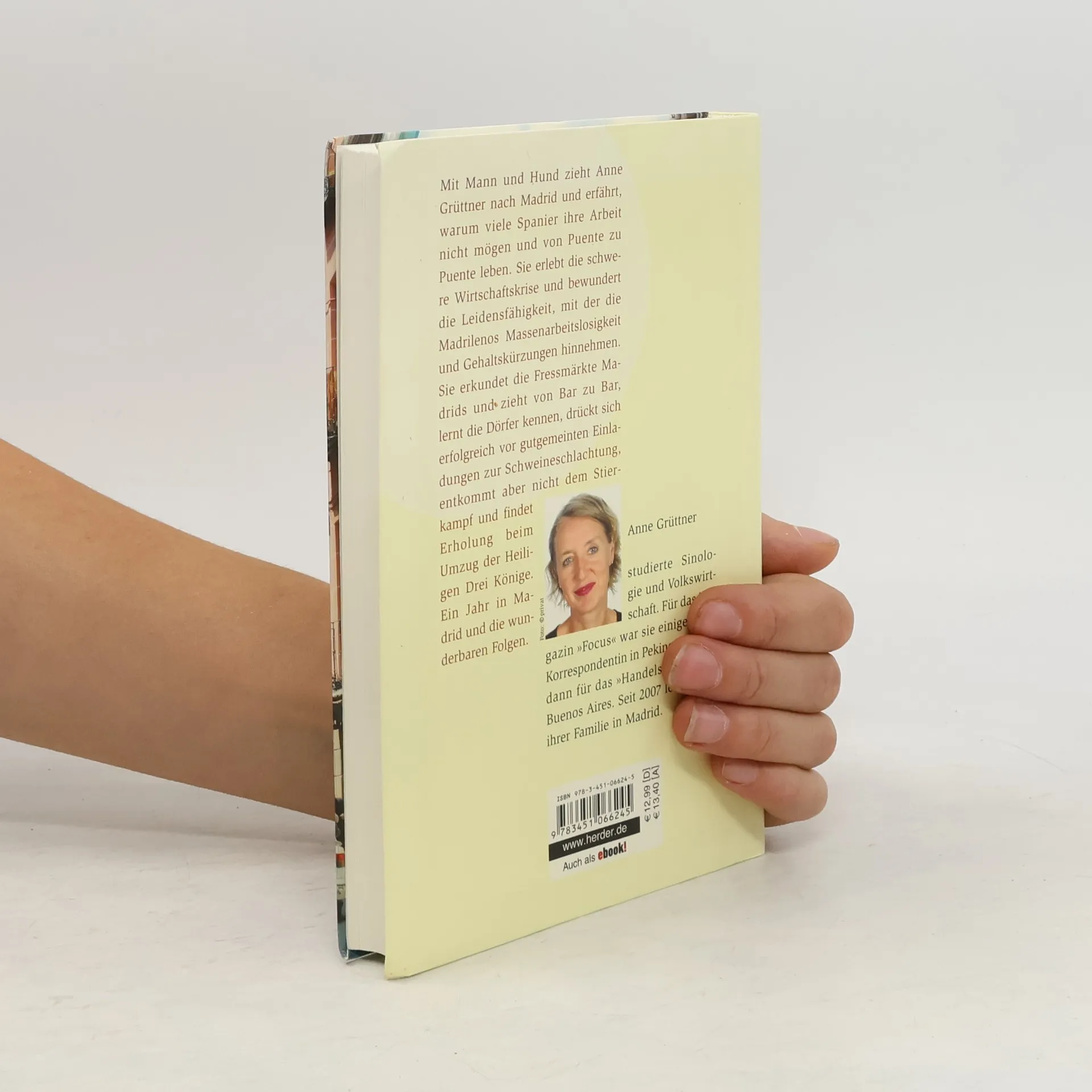 Mit Mann und Hund zieht Anne Grüttner nach Madrid und erfährt, warum die meisten Spanier ihre Arbeit hassen und von Wochenende zu Wochenende, von Puente zu Puente leben. Sie erlebt die schwere Wirtschaftskrise, in der Spanien seit vielen Jahren gefangen ist, und bewundert die langmütige Leidensfähigkeit, mit der die Madrilenos die Zumutungen der Krise wie Massenarbeitslosigkeit und Gehaltskürzungen hinnehmen. Sie erkundet die Fressmärkte Madrids und zieht von Bar zu Bar, lernt die Dörfer kennen, drückt sich erfolgreich vor gutgemeinten Einladungen zur Schweineschlachtung und zum Stierkampf und findet Erholung beim Umzug der Heiligen Drei Könige. Ein Jahr in Madrid und die wunderbaren Folgen.