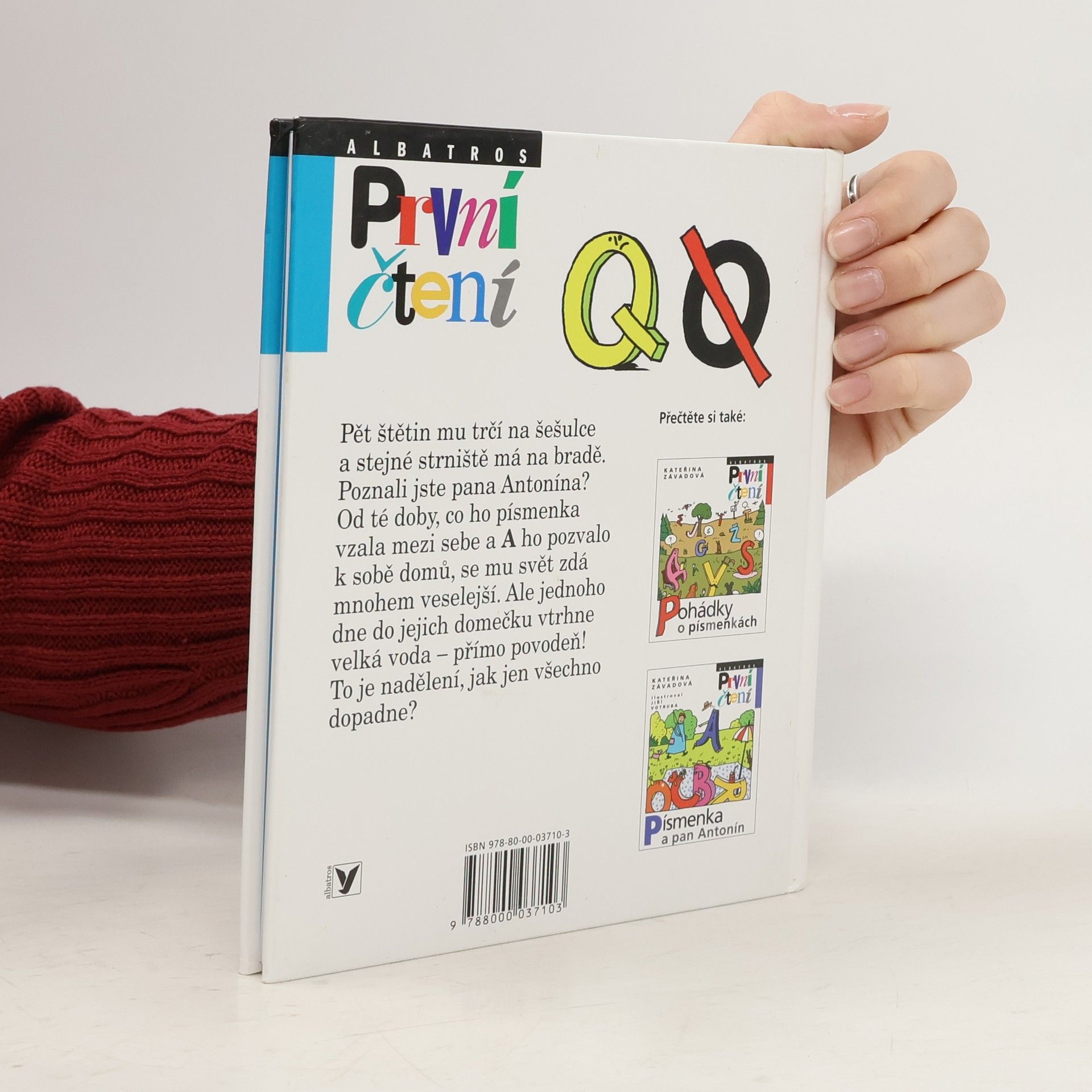 Pět štětin mu trčí na šešulce a stejné strniště má na bradě. Poznali jste pana Antonína? Od té doby, co ho písmenka vzala mezi sebe a A ho pozvalo k sobě domů, se mu svět zdá mnohem veselejší. Ale jednoho dne do jejich domečku vtrhne velká voda – přímo povodeň! A navíc si pan Q pořád stěžuje, že se písmenkům nehodí do žádného slova. To je nadělení, jak jen tohle všechno dopadne? Volné pokračování knížek Pohádky o písmenkách a Písmenka a pan Antonín.