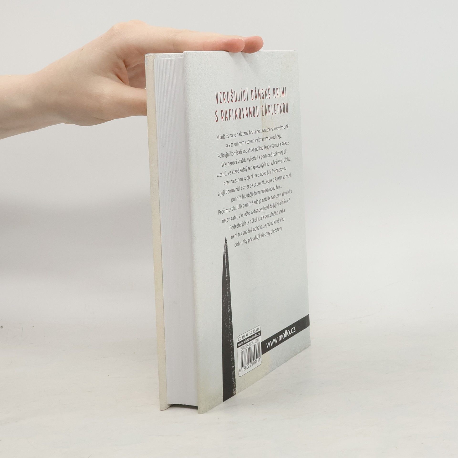 Mladá žena je nalezena brutálně zavražděná ve svém bytě s tajemným vzorem vyřezaným do obličeje. Policejní komisaři kodaňské policie Jeppe Korner a Anette Wernerová vraždu vyšetřují a postupně rozkrývají síť vztahů, ve které každý ze zapletených lidí sehrál svou úlohu. Brzy naleznou spojení mezi obětí Julií Stenderovou a její domovnicí Esther de Laurenti. Jeppe a Anette se musí ponořit hlouběji do minulosti obou žen… Proč musela Julie zemřít? Kdo je natolik zvrácený, aby dívku nejen zabil, ale ještě sadisticky řezal do jejího obličeje? Podezřelých je několik, ale skutečného vraha není tak snadné odhalit, zejména když jeho pohnutky přesahují všechny představitelné scénáře. Debut dánské spisovatelky Katrine Engbergové překvapí mrazivým napětím, rafinovanou zápletkou i citlivě vykreslenými lidskými osudy. Román je první knihou z očekávané trilogie o policejních komisařích Jeppem Kornerovi a Anette Wernerové.