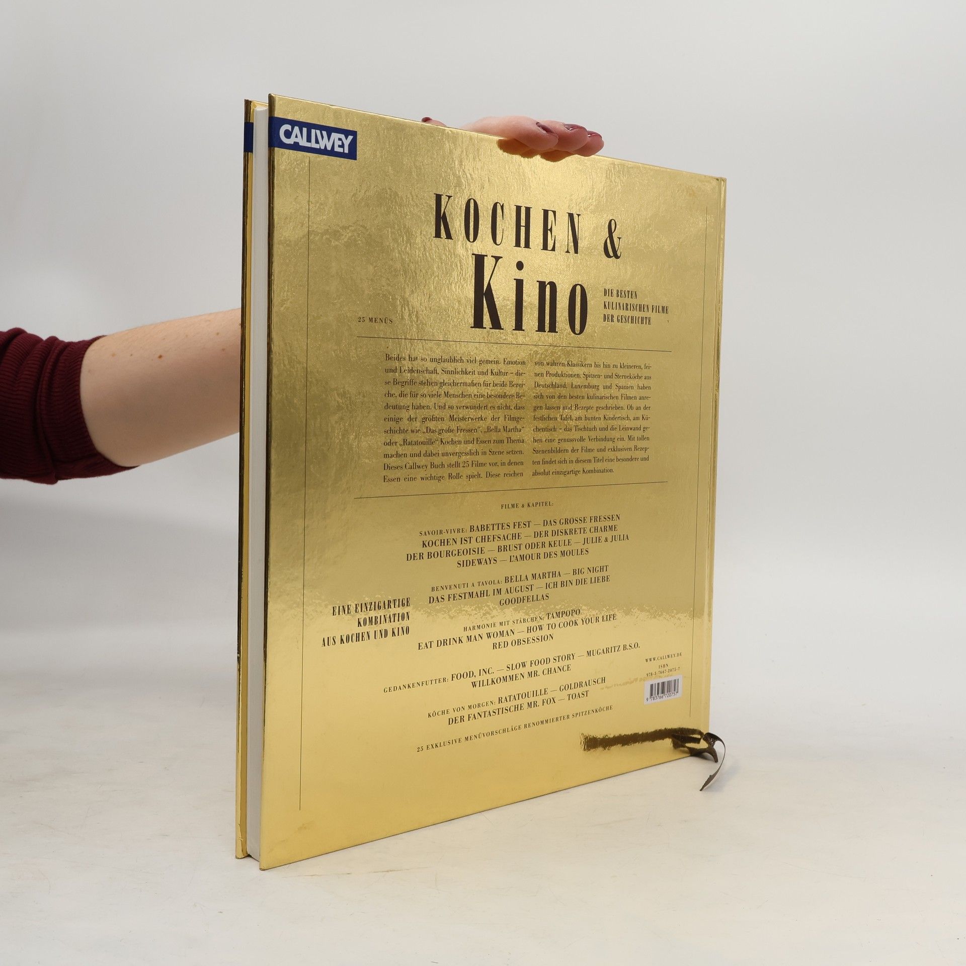 Kochen und Kino. Beides hat so unglaublich viel gemein. Emotion und Leidenschaft, Sinnlichkeit und Kultur – diese Begriffe stehen gleichermaßen für beide Bereiche, die für so viele Menschen eine besondere Bedeutung haben. Und so verwundert es nicht, dass einige der größten Meisterwerke der Filmgeschichte wie „Das große Fressen“, „Bella Martha“ oder „Ratatouille“ Kochen und Essen zum Thema machen und dabei unvergesslich in Szene setzen. Das Buch stellt 25 Filme vor, in denen Essen eine wichtige Rolle spielt. Diese reichen von wahren Klassikern bis hin zu kleineren, feinen Produktionen. Spitzen- und Sterneköche aus Deutschland, Luxemburg und Spanien haben sich von den besten kulinarischen Filmen anregen lassen und Rezepte geschrieben. Ob an der festlichen Tafel, am bunten Kindertisch, am Küchentisch – das Tischtuch und die Leinwand gehen eine genussvolle Verbindung ein. Mit tollen Szenenbildern der Filme und exklusiven Rezepten findet sich in diesem Titel eine besondere und absolut einzigartige Kombination.