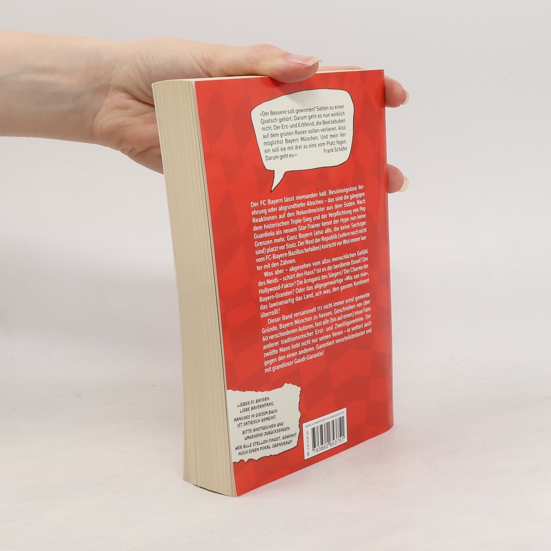 Der FC Bayern lässt niemanden kalt. Besinnungslose Verehrung oder abgrundtiefe Abscheu – das sind die gängigen Reaktionen auf den Rekordmeister aus dem Süden. Nach dem historischen Triple-Sieg und der Vorstellung von Pep Guardiola als neuem Trainer des Starensembles von der Isar kennt der Hype nun keine Grenzen mehr. Auch die Steueraffäre um Uli Hoeneß kann der Euphorie keinen Abbruch tun. Ganz Bayern (also alle, die keine Sechzger sind) platzt vor Stolz. Mia san mia als lederhosenknarzendes 24-Stunden-Lebensgefühl. Der Rest der Republik (wenn noch nicht vom FC-Bayern-Bazillus befallen) knirscht vor Wut immer lauter mit den Zähnen und köchelt derweil die guten alten Vorurteile wieder auf. Was aber – abgesehen vom allzu menschlichen Gefühl des Neids – schürt den unbändigen Hass? Gibt es ernst zu nehmende Gründe? Was steckt wirklich hinter der Wut auf die Bayern? Ist es der berühmte Dusel? Der Hollywood-Faktor? Die Arroganz des Siegers? Die Eleganz des Kaisers? Die Wortgewalt von Kalle Rummenigge? Dieser Band versammelt 111 Gründe, Bayern München zu hassen. Geschrieben von etwa 66 Autoren, fast alle (bis auf einen) treue Fans anderer traditionsreicher Erst- und Zweitligavereine. Der zwölfte Mann liebt nicht nur seinen Verein – er hasst auch den einen anderen. Garantiert vorurteilsbelastet und mit Guardiola-, äh, grandioser Gaudi-Garantie!