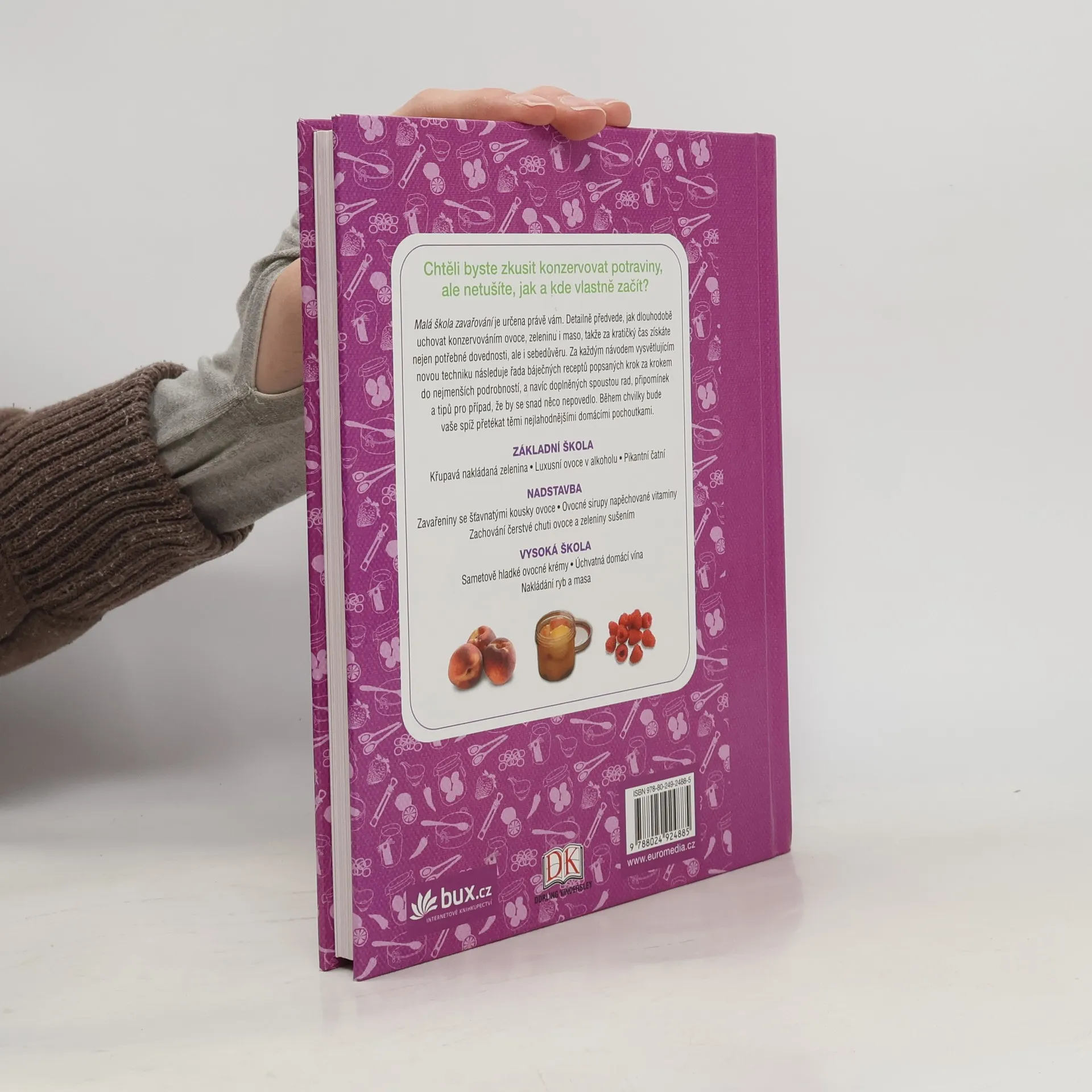 Všechno, co potřebujete k úspěchu Malá škola zavařování ukáže, jak zavařovat, mrazit, sušit a nakládat ovoce, zeleninu i maso, jak připravit čatní, marmelády, ovocné krémy, rosoly, želé či alkoholické nápoje, jak nakládat ryby nebo připravit úžasnou šunku. Za každým návodem vysvětlujícím novou techniku následuje řada báječných receptů popsaných krok za krokem, a navíc doplněných spoustou rad, připomínek a tipů. Během chvilky bude vaše spíž přetékat těmi nejlahodnějšími domácími pochoutkami, které se hned tak nezkazí.