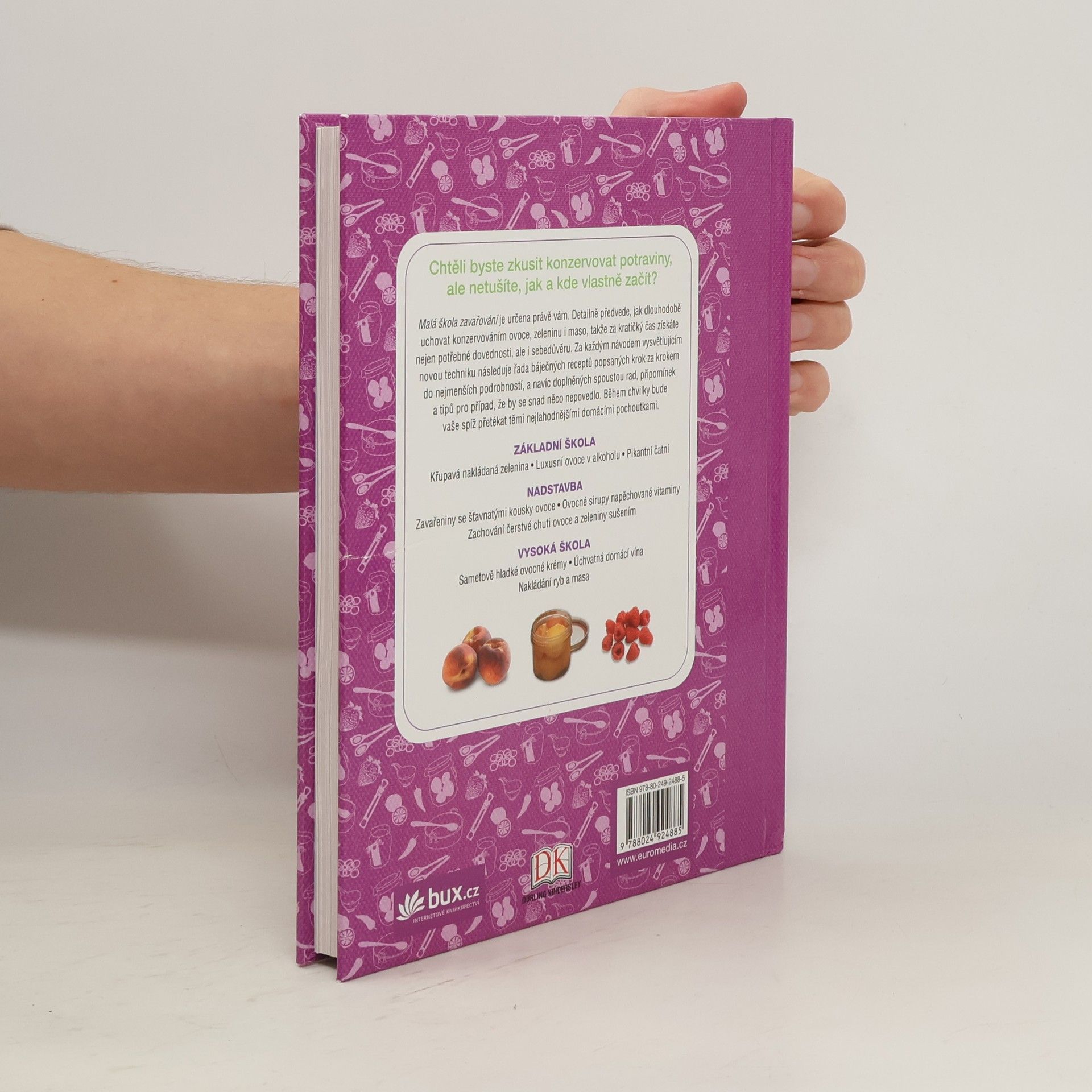 Všechno, co potřebujete k úspěchu Malá škola zavařování ukáže, jak zavařovat, mrazit, sušit a nakládat ovoce, zeleninu i maso, jak připravit čatní, marmelády, ovocné krémy, rosoly, želé či alkoholické nápoje, jak nakládat ryby nebo připravit úžasnou šunku. Za každým návodem vysvětlujícím novou techniku následuje řada báječných receptů popsaných krok za krokem, a navíc doplněných spoustou rad, připomínek a tipů. Během chvilky bude vaše spíž přetékat těmi nejlahodnějšími domácími pochoutkami, které se hned tak nezkazí.