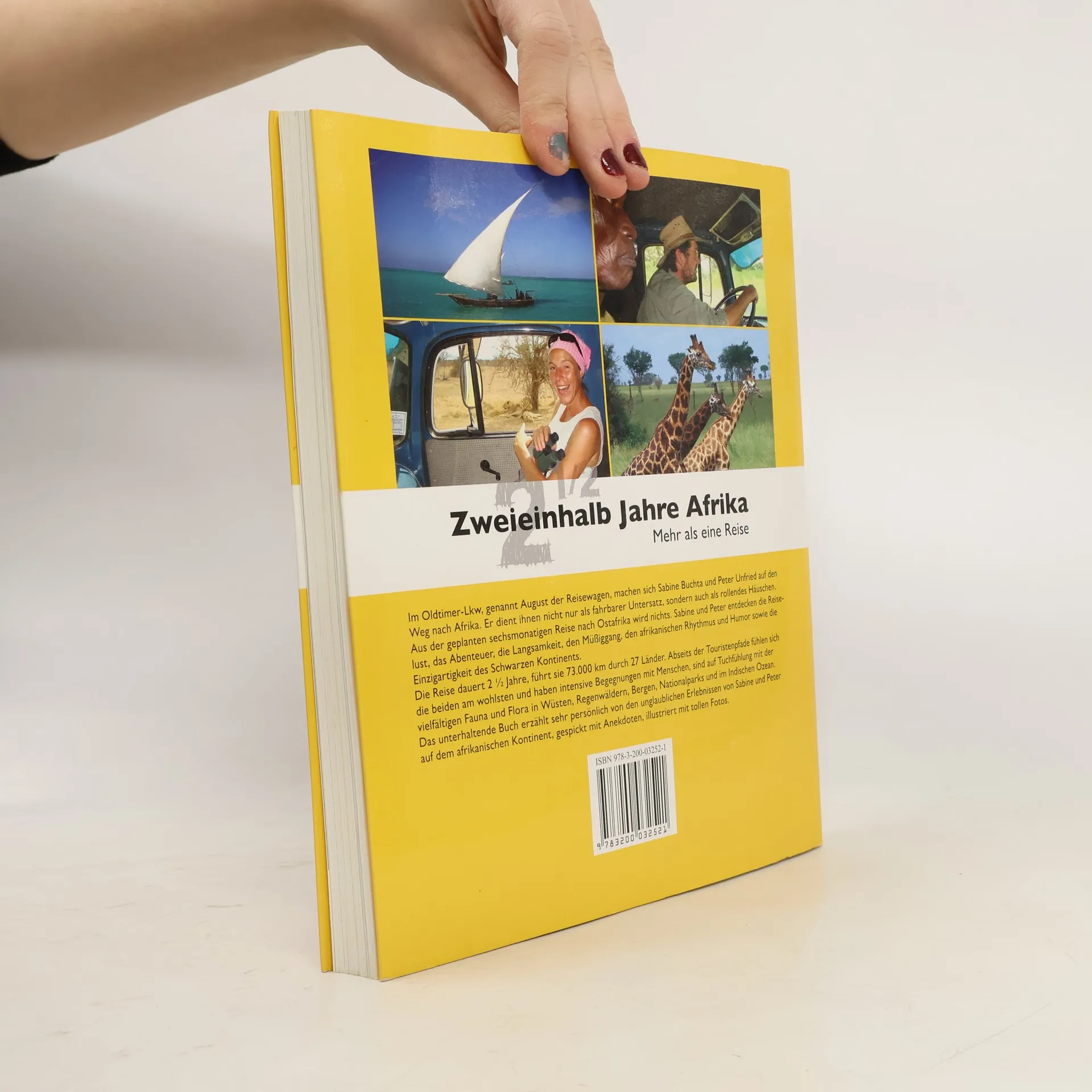 Im Oldtimer-Lkw, genannt August der Reisewagen, machen sich Sabine Buchta und Peter Unfried auf den Weg nach Afrika. Er dient ihnen nicht nur als fahr-barer Untersatz, sondern auch als rollendes Häuschen. Aus der geplanten sechs-monatigen Reise nach Ostafrika wird nichts. Sabine und Peter entdecken die Reiselust, das Abenteuer, die Langsamkeit, den Müßiggang, den afrikanischen Rhythmus und Humor und die Einzigartigkeit des Schwarzen Kontinents. Die Reise dauert 2 ½ Jahre, führt sie 73.000 km durch 27 Länder. Abseits der Touristenpfade fühlen sich die beiden am wohlsten und haben intensive Be-gegnungen mit Menschen, sind auf Tuchfühlung mit der vielfältigen Fauna und Flora in Wüsten, Regenwäldern, Bergen, Nationalparks und im Indischen Ozean. Das unterhaltende Buch erzählt sehr persönlich von den unglaublichen Erlebnissen von Sabine und Peter auf dem afrikanischen Kontinent, gespickt mit Anekdoten, illustriert mit tollen Fotos.