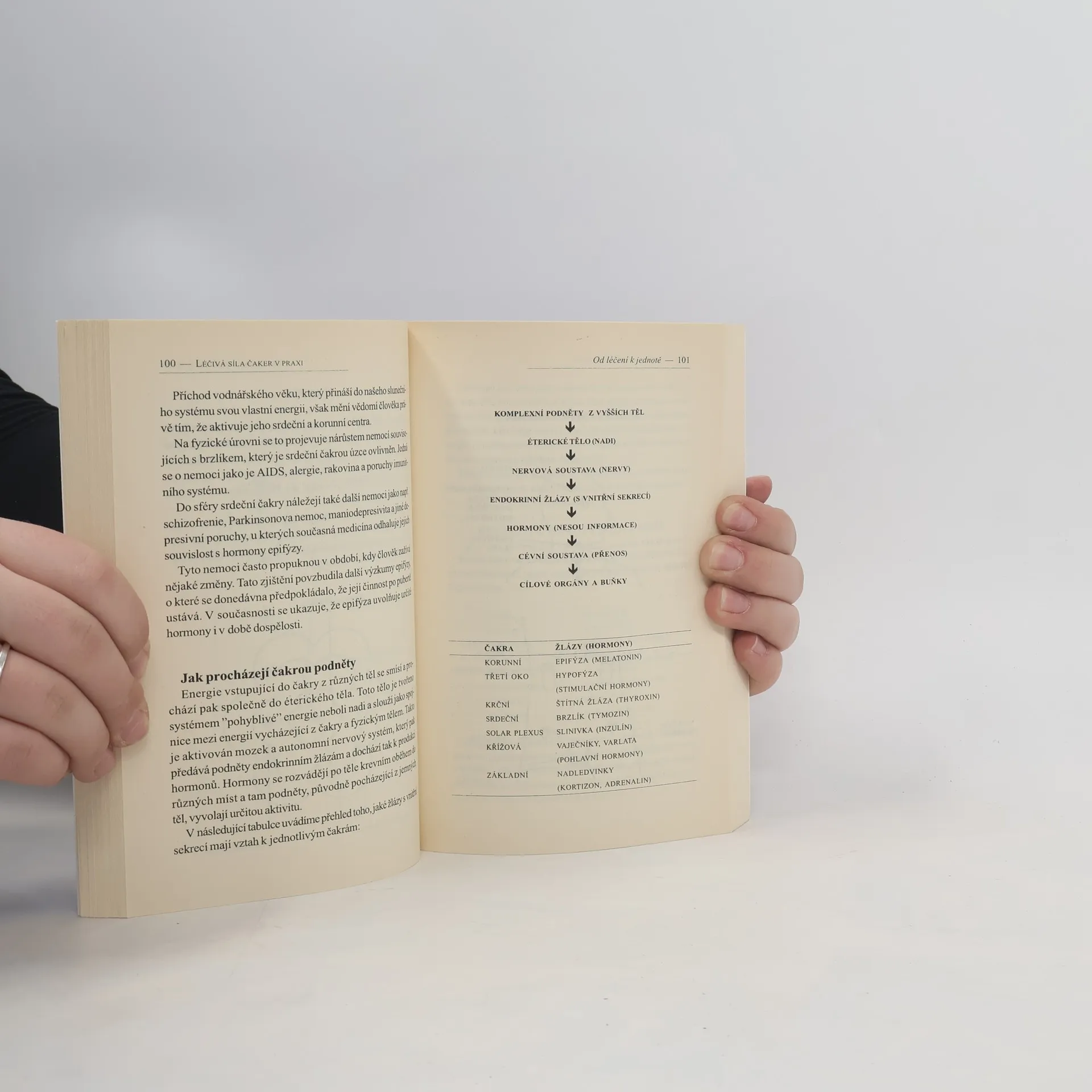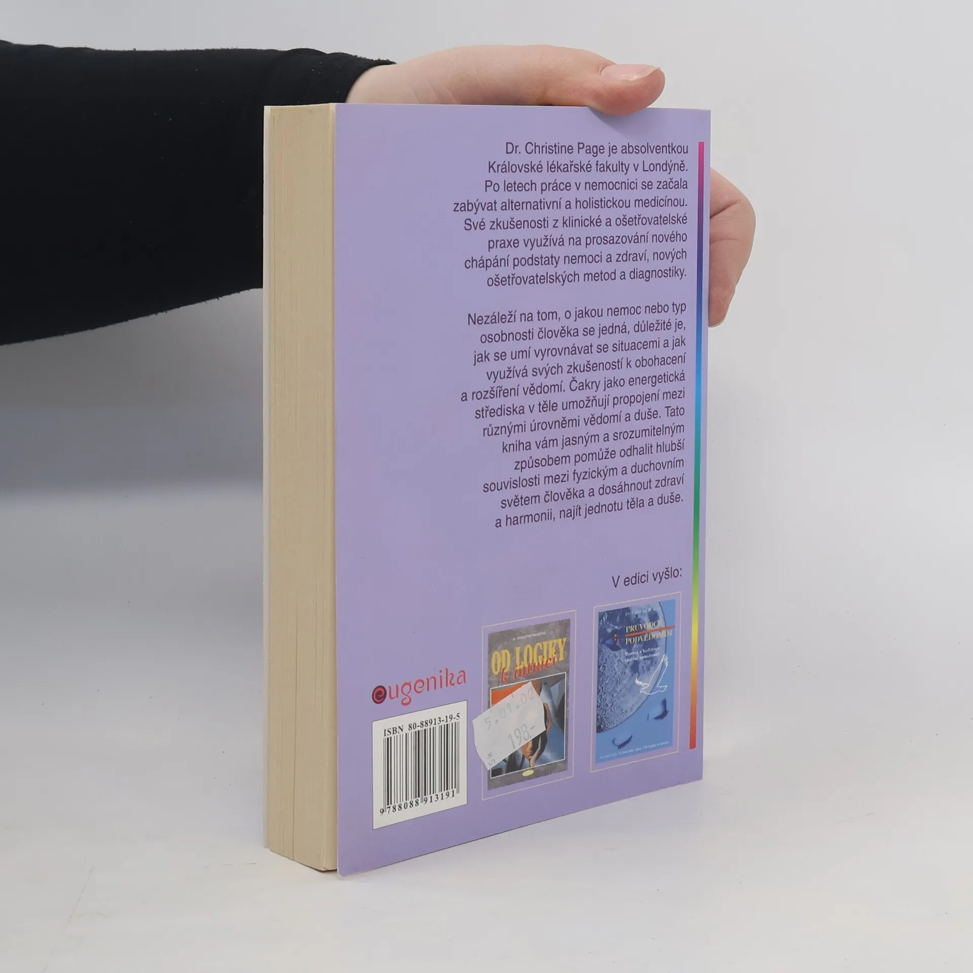 Kniha vám jasným a srozumitelným způsobem pomůže odhalit hlubší souvislosti mezi fyzickým a duchovním světem člověka a dosáhnout zdraví a harmonii, najít jednotu těla a duše. Čakry jako energetická střediska v těle umožňují propojení mezi různými úrovněmi vědomí a duše. Kniha odhaluje hlubší souvislost mezi fyzickým a duchovním světem člověka k dosažení zdraví a harmonie. Autorka je absolventkou Královské lékařské fakulty v Londýně. Po letech práce v nemocnici se začala zabývat alternativní a holistickou medicínou. Své zkušenosti z klinické a ošetřovatelské praxe využívá na prosazování nového chápání podstaty nemoci a zdraví, nových ošetřovatelských metod a diagnostiky.