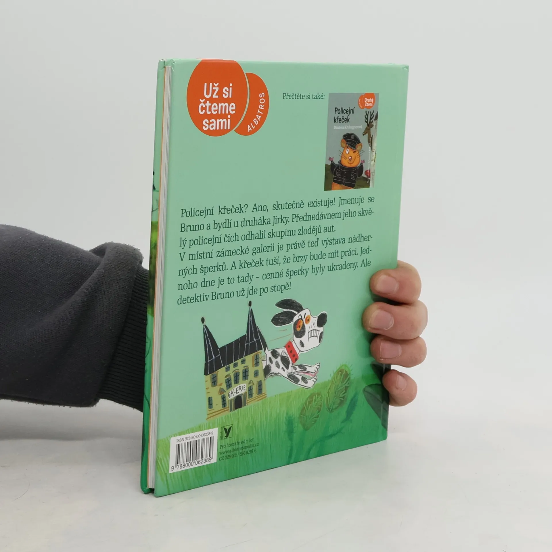 Policejní křeček? Ano, skutečně existuje! Jmenuje se Bruno a bydlí u druháka Jirky. Přednedávnem jeho skvělý policejní čich odhalil skupinu zlodějů aut. V místní zámecké galerii je právě teď výstava nádherných šperků. A křeček tuší, že brzy bude mít práci. Jednoho dne je to tady – cenné šperky byly ukradeny. Ale detektiv Bruno už jde po stopě! Volné pokračování knížky Policejní křeček.