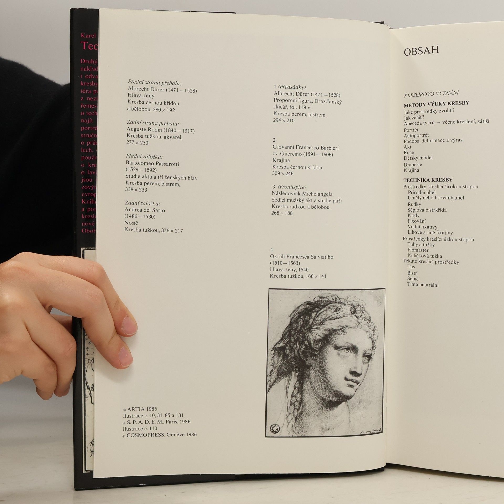 Druhý svazek edice Umělcova dílna připravilo nakladatelství Artia pro čtenáře, kteří mají chuť i odvahu pokoušet se o vlastní tvorbu v obotu kresby. Tato kniha by ráda zbavila každého amatéra počáteční nejistoty a bezradnosti, vyplývající z neznalosti záklasních zákonitostí kreslířského řemesla. Nabízí čtenáři elementární vědomosti o technice kresby a metodách její výuky. Lze v ní najít kapitoly o jednotlivých žánrech- zátiší, portrétu, autoportrétu, aktu, krajině apod. se stručnými exkursy do jejich historie, pojednání o práci v atelieru i v plenéru, poučení o materiálech, o rozličných technikách a jejich správném použití. Všechny uvedené techniky-ať již jde o kresbu perem, tužkou, křídami, hrudkou nebo lavírovanou perokresbu, kresbu štětcem apod. jsou v publikaci dokumentovány bohatým obrazovým materiálem, shromážděným z významných evropských sbírek. Kniha o technice kresby se může stát rádcem a pomocníkem každému, kdo začíná s abecedou kreslení. Praktické pokusy v kresbě přinášejí také nové podněty při objevování okolního světa. Obohacují náš život a prohlubují výtvarné umění.