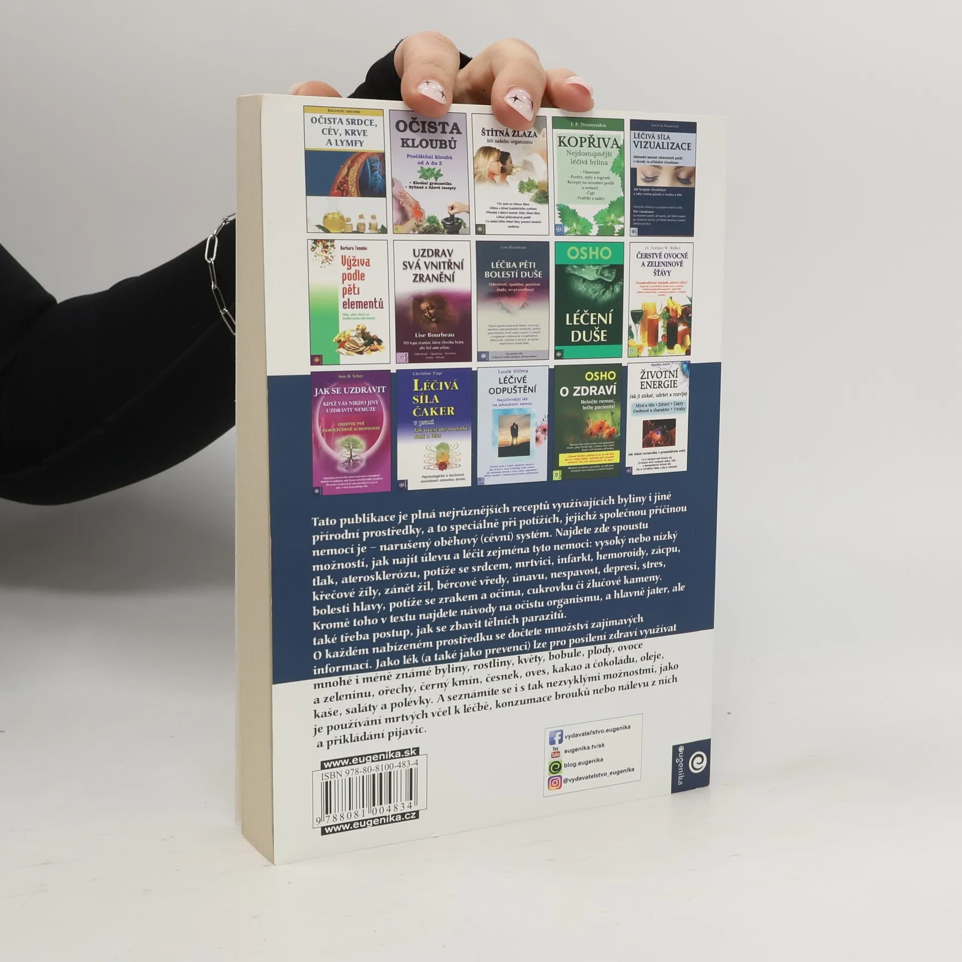 Tato publikace je plná nejrůznějších receptů využívajících bylin i jiných přírodních prostředků, a to speciálně při potížích, jež mají společné jedno: narušený oběhový systém. Najdete zde spoustu možností, jak najít úlevu a léčit zejména tyto nemoci: vysoký nebo nízký tlak, ateroskleróza, potíže se srdcem, mrtvice, infarkt, hemoroidy, zácpa, křečové žíly, zánět žil, bércové vředy, únava, nespavost, deprese, stres, bolesti hlavy, potíže se zrakem a očima, cukrovka, žlučové kameny. Kromě toho návody na očistu organismu a hlavně jater, či jak se zbavit parazitů. O každém nabízeném prostředku se dočtete všelicos zajímavého. Jako lék a také jako prevenci, pro posílení zdraví lze využívat mnohé i méně známé byliny, rostliny, květy, bobule, plody, ovoce a zeleninu, ořechy, černý kmín, česnek, oves, kakao a čokoládu, oleje, kaše, saláty a polévky. A seznámíte se zde i s tak nezvyklými možnostmi, jako je požití mrtvých včel, konzumace brouků nebo nálevu z nich a přikládání pijavic.