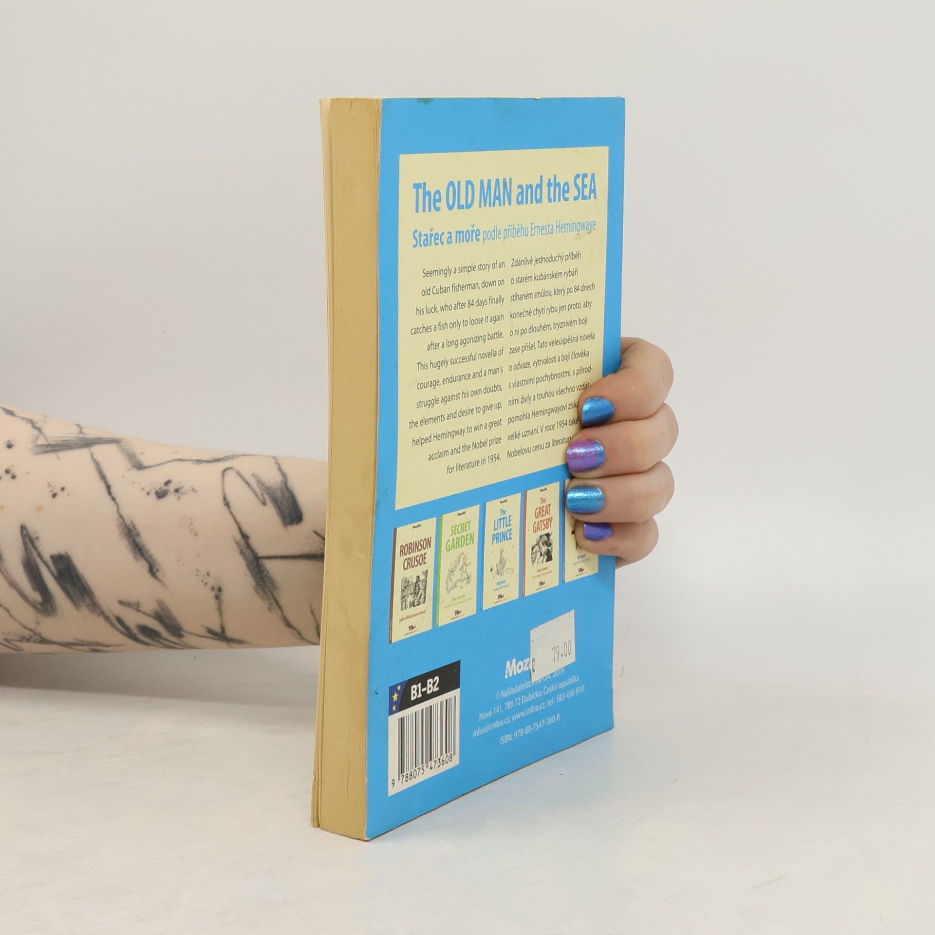 Anglicko-český zrcadlový text (B1-B2). Zdánlivě jednoduchý příběh o starém kubánském rybáři stíhaném smůlou, který po 84 dnech konečně chytí rybu jen proto, aby o ni po dlouhém, trýznivém boji zase přišel. Tato veleúspěšná novela o odvaze, vytrvalosti a boji člověka s vlastními pochybnostmi, s přírodními živly a touhou všechno vzdát pomohla Hemingwayovi získat velké uznání. V roce 1954 také Nobelovu cenu za literaturu.
