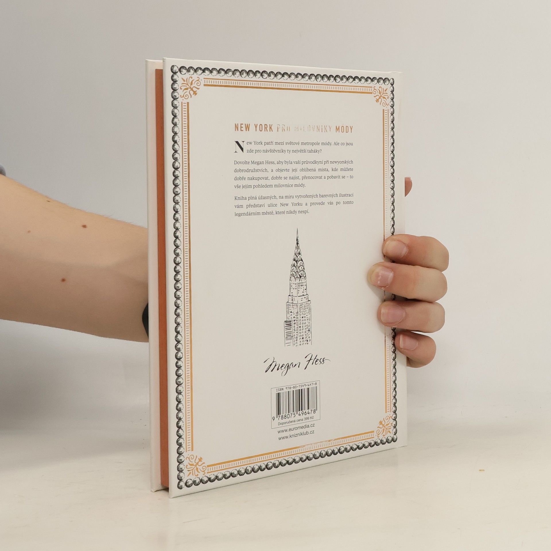 Nechte se provést New Yorkem, jedním z nejrespektovanějších módních měst světa. Mezinárodně uznávaná ilustrátorka Megan Hess vám ukáže svá oblíbená místa na nakupování, zábavu, a odpočinek. Nechybí ani restaurace, kde si po celém dni procházení můžete dát něco dobrého. Vše je ilustrováno autorčiným jedinečným elegantním stylem. Od nepřekonatelných výhledů z Empire State Building až po proslavené dortíčky z Magnolia Bakery, tato kniha je nutností pro každého milovníka módy.
