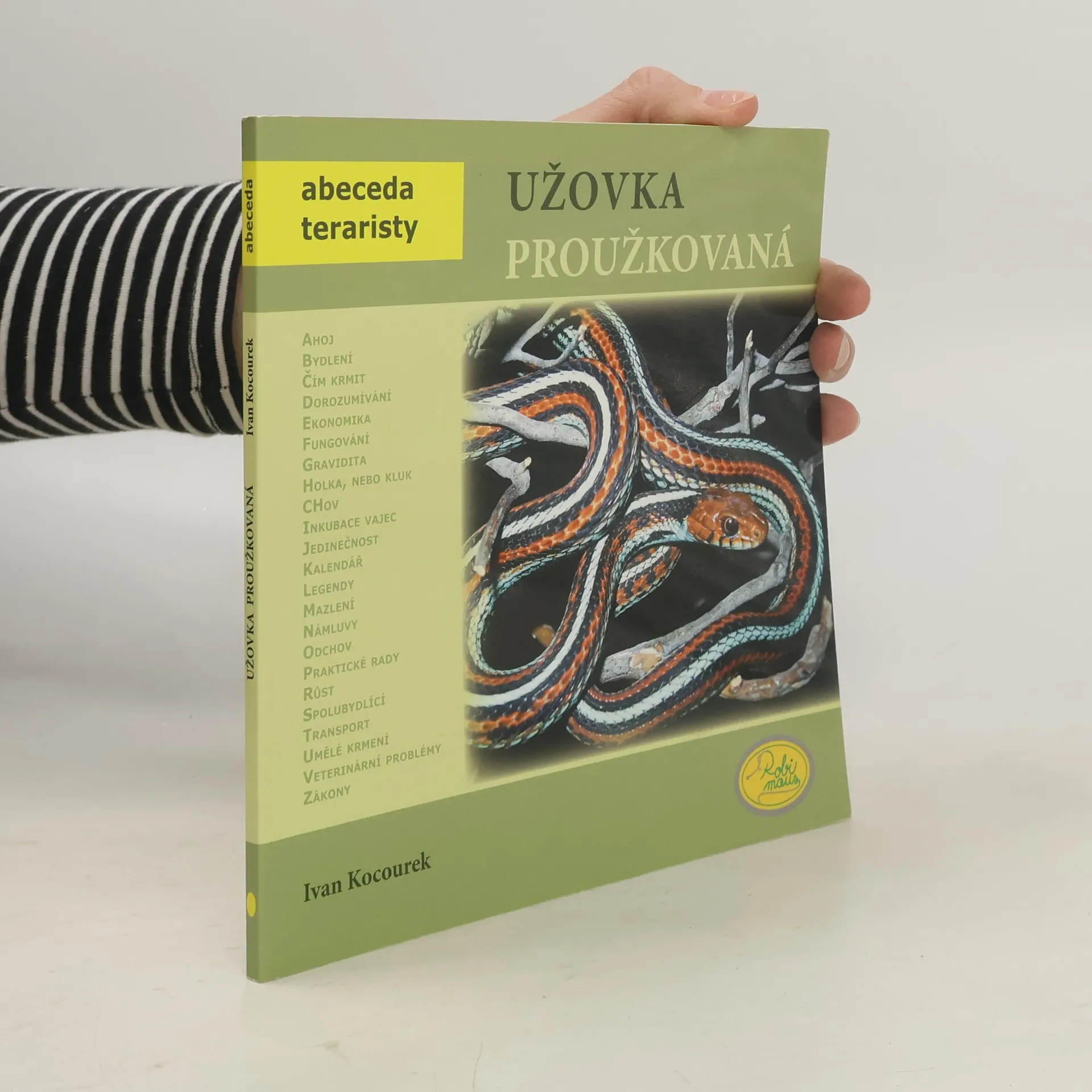 V pořadí již 22. titul z edice Abeceda teraristy. V knize autora Ivana Kocourka naleznete veškeré potřebné informace důležité k chovu užovek proužkovaných. Tato kniha je určena jak pro začínající, tak i zkušené chovatele. Kapitoly jsou řazeny podle abecedních hesel, doplněné množstvím zdařilých fotografií a popisů. Kniha obsahuje například kapitoly s názvy Bydlení, Čím krmit, Chov, Jedinečnost, Transport, Veterinární problémy a mnohé další praktické rady.