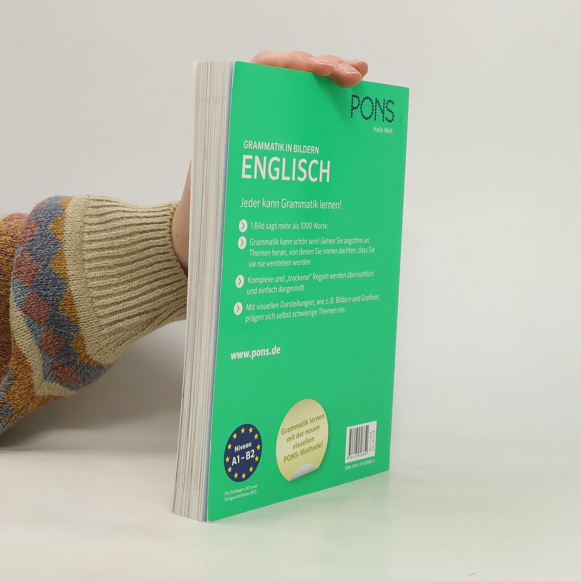 Jeder kann Grammatik lernen! • 1 Bild sagt mehr als 1000 Worte. • Grammatik kann schön sein! Gehen Sie angstfrei an Themen heran, von denen Sie immer dachten, dass Sie sie nie verstehen werden. • Komplexe und „trockene“ Regeln werden übersichtlich und einfach dargestellt. • Mit visuellen Darstellungen, wie z. B. Bildern, Grafiken, Piktogrammen u. v. m., prägen sich selbst schwierigste Phänomene leicht ein. Lernen Sie erfolgreich Grammatik mit der neuen visuellen PONS-Methode! Für visuelle Lerntypen, denen das Grammatiklernen bisher schwergefallen ist. Anfänger (A1) bis Fortgeschrittene (B2).