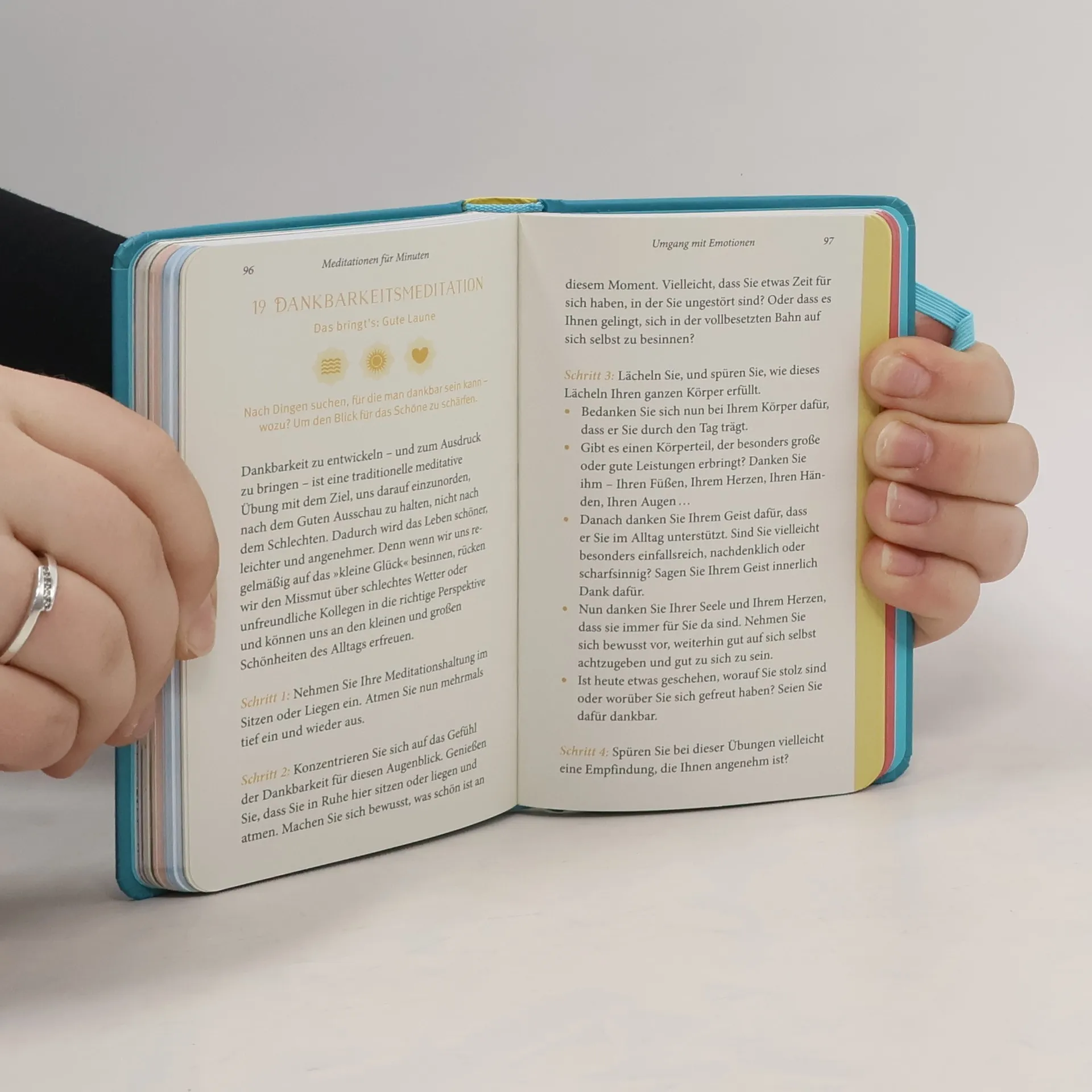 Meditation ist eine Bewusstseinsübung, die uns hilft, uns auf das Hier und Jetzt zu konzentrieren, zu entschleunigen und wieder zu uns zu kommen. Doch wie soll man die Ruhe dazu finden, wenn die Zeit rast und das Leben immer unübersichtlich wird? Mit den Kurzmeditationen für jede Gelegenheit, während man auf den Zug wartet, im Stau steht oder beim Arzt sitzt, wird verloren geglaubte Zeit zum Geschenk. Keine dauert länger als drei Minuten. Die Wahrnehmung schärft sich, man landet sanft wieder in der Gegenwart, fühlt sich klar im Kopf und lernt sich selbst besser kennen. Je öfter man die kleinen Übungen für jede Situation und jede Problemstellung durchführt, desto mehr wirken sich die tiefe Entspannung, innere Klarheit und Zufriedenheit auf alle Lebensbereiche aus.