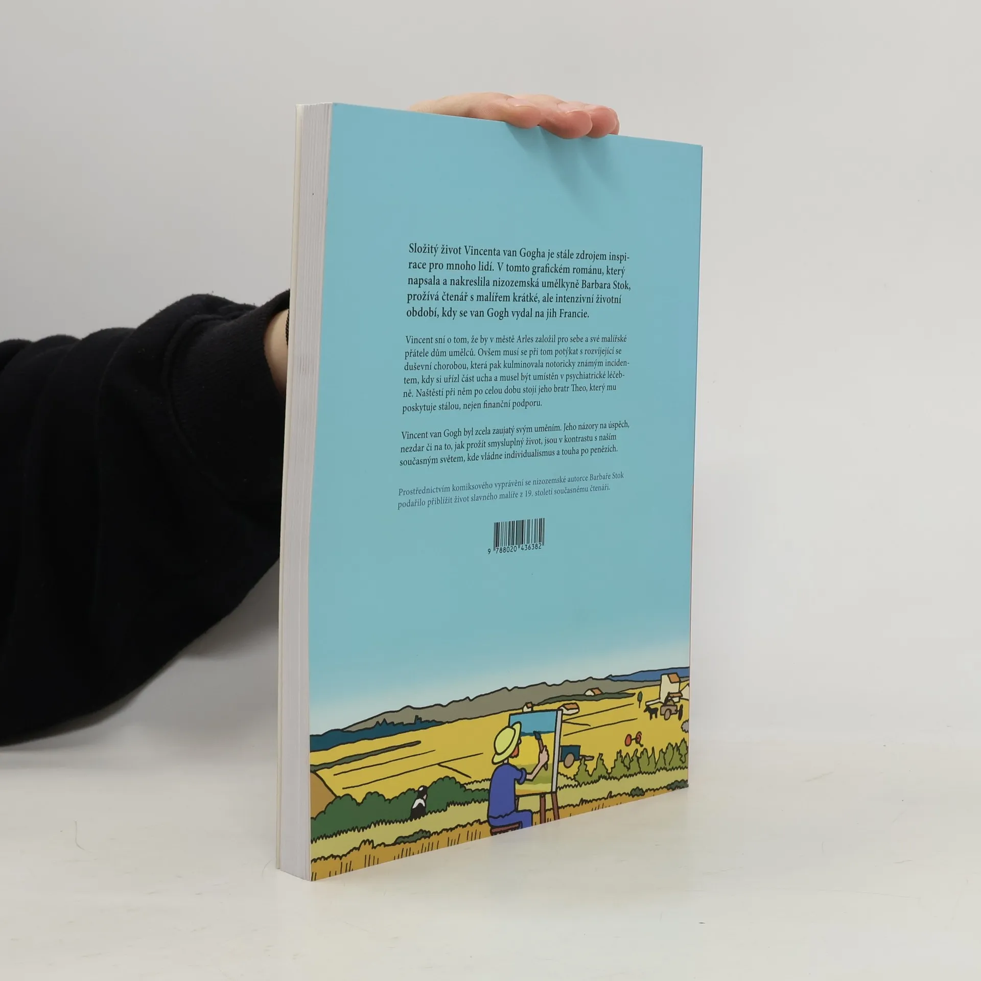 Složitý život Vincenta van Gogha je stále zdrojem inspirace pro mnoho lidí. V tomto grafickém románu, který napsala a nakreslila nizozemská umělkyně Barbara Stok, prožívá čtenář s malířem krátké, ale intenzivní životní období, kdy se vydal na jih Francie. Vincent sní o tom, že by v městě Arles založil pro sebe a své malířské přátele dům umělců. Ovšem musí se při tom potýkat s rozvíjející se duševní chorobou, která pak kulminovala notoricky známým incidentem, kdy si uřízl část ucha a musel být umístěn v psychiatrické léčebně. Naštěstí při něm po celou dobu stojí jeho bratr Theo, který mu poskytuje stálou, nejen finanční podporu. Vincent van Gogh byl zcela zaujatý svým uměním. Jeho názory na úspěch, nezdar či jak prožít smysluplný život jsou v kontrastu s naším současným světem, kde vládne individualismus a touha po penězích. Nizozemské autorce Barbaře Stok se komiksovým způsobem podařilo život slavného malíře z 19. století podat tak, aby jej přiblížila současnému čtenáři.