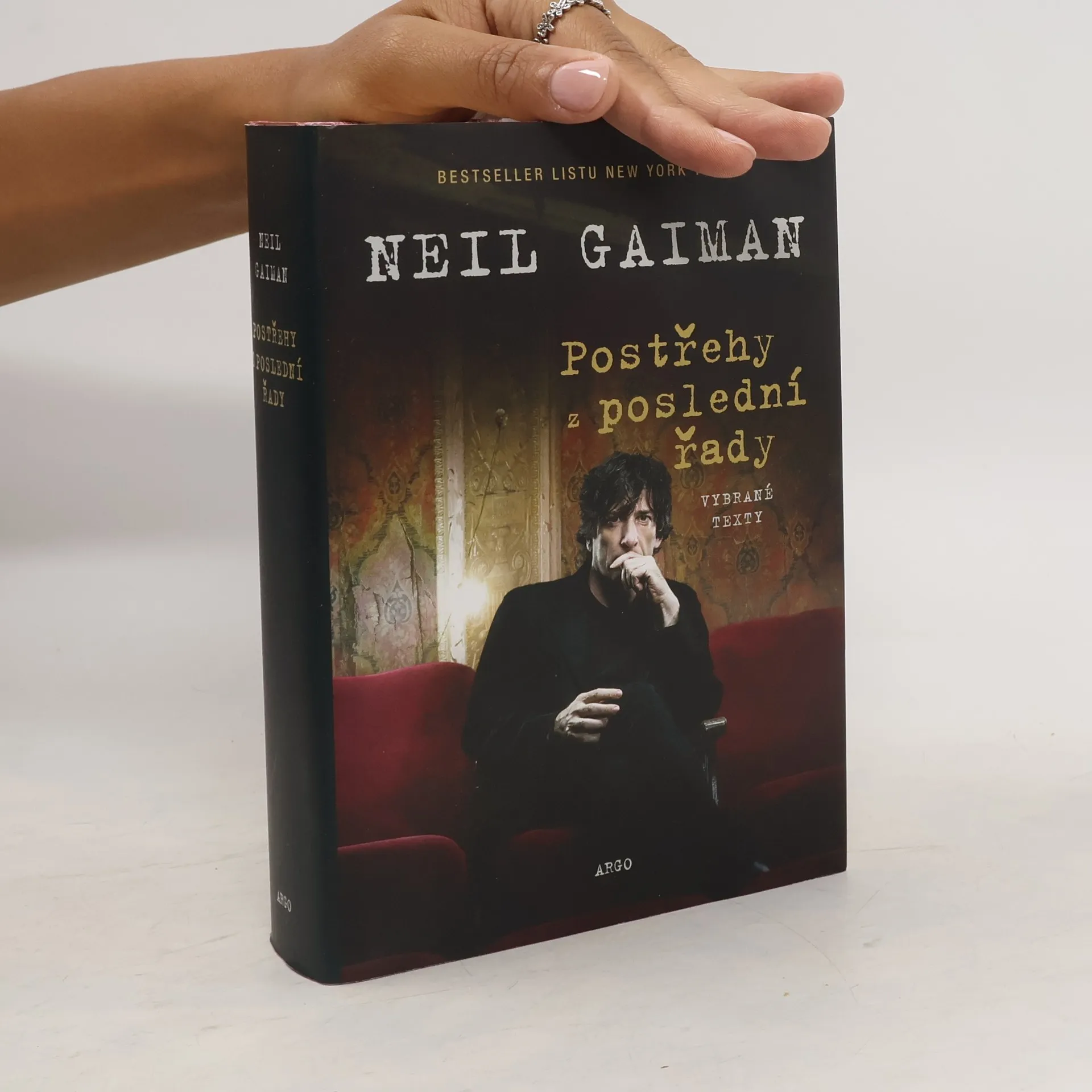 Když Neila Gaimana posadili při udílení Oscarů za rok 2009 na první balkón, odkud toho moc neviděl, neměl příliš dobrou náladu a nudil se. Díky tomu zážitku vznikl text Postřehy z poslední řady, který později propůjčil název sbírce projevů, esejů, úvah a sloupků. Gaiman v tomto souboru dokazuje, že se bravurně orientuje nejen ve sci-fi, fantasy a komiksu, ale také v hudbě, politice, literatuře a umění obecně. Posaďte se s Neilem Gaimanem do poslední řady a nechte si vyprávět o pohádkách, Batmanovi a H. P. Lovecraftovi, ale také o Douglasu Adamsovi, Tori Amos nebo nově se rodící americké mytologii.
