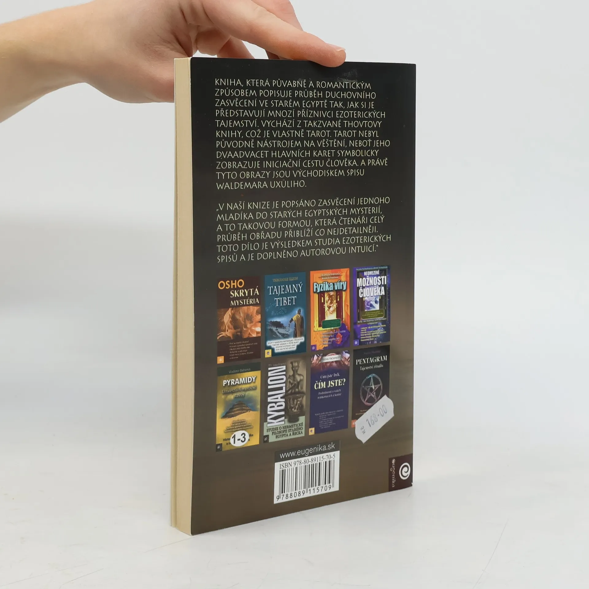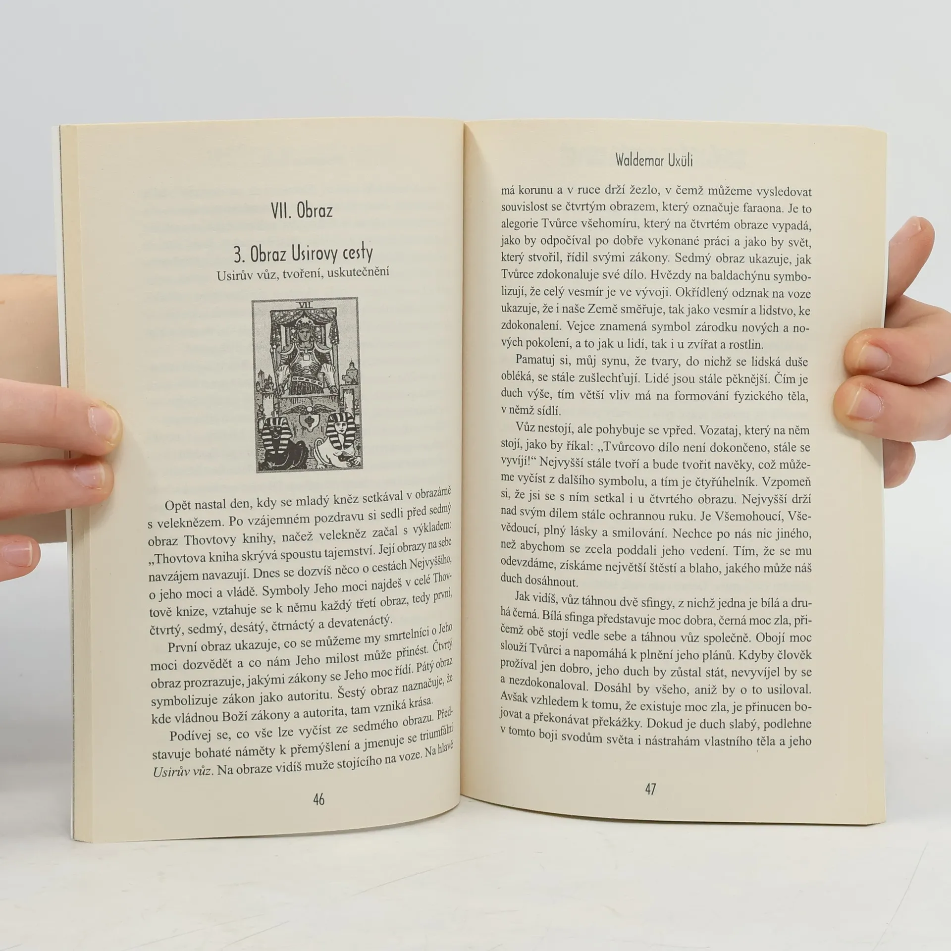 Kniha půvabně a romantickým způsobem popisuje průběh duchovního zasvěcení ve starém Egyptě tak, jak si je představují mnozí příznivci ezoterických tajemství. Vychází z takzvané Thovtovy knihy, což je vlastně tarot. Tarot nebyl původně nástrojem na věštění, neboť jeho dvaadvacet hlavních karet symbolicky zobrazuje iniciační cestu člověka. A právě tyto obrazy jsou východiskem spisu Waldemara Uxüliho. "V naší knize je popsáno zasvěcení jednoho mladíka do starých egyptských mysterií, a to takovou formou, která čtenáři celý průběh obřadu přiblíží co nejdetailněji. Toto dílo je výsledkem studia ezoterických spisů a je doplněno autorovou intuicí."